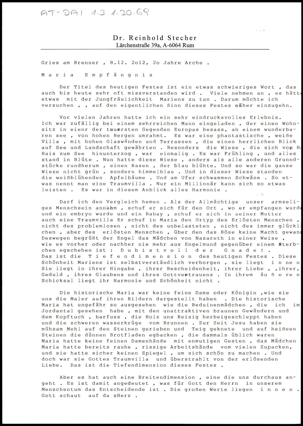 Nachlass Bischof Stecher