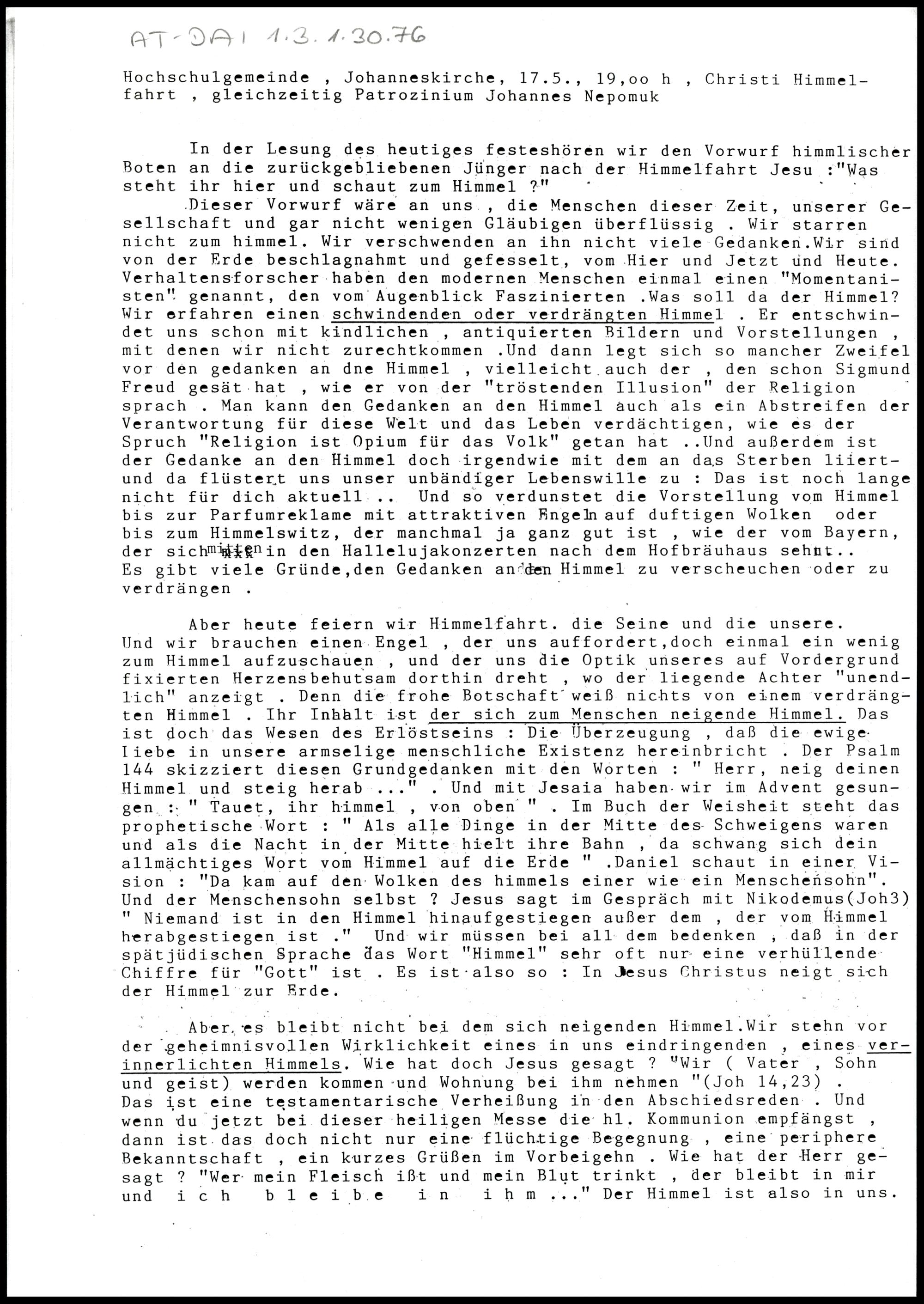 Christi Himmelfahrt, Hochschulgemeinde, Johanneskirche