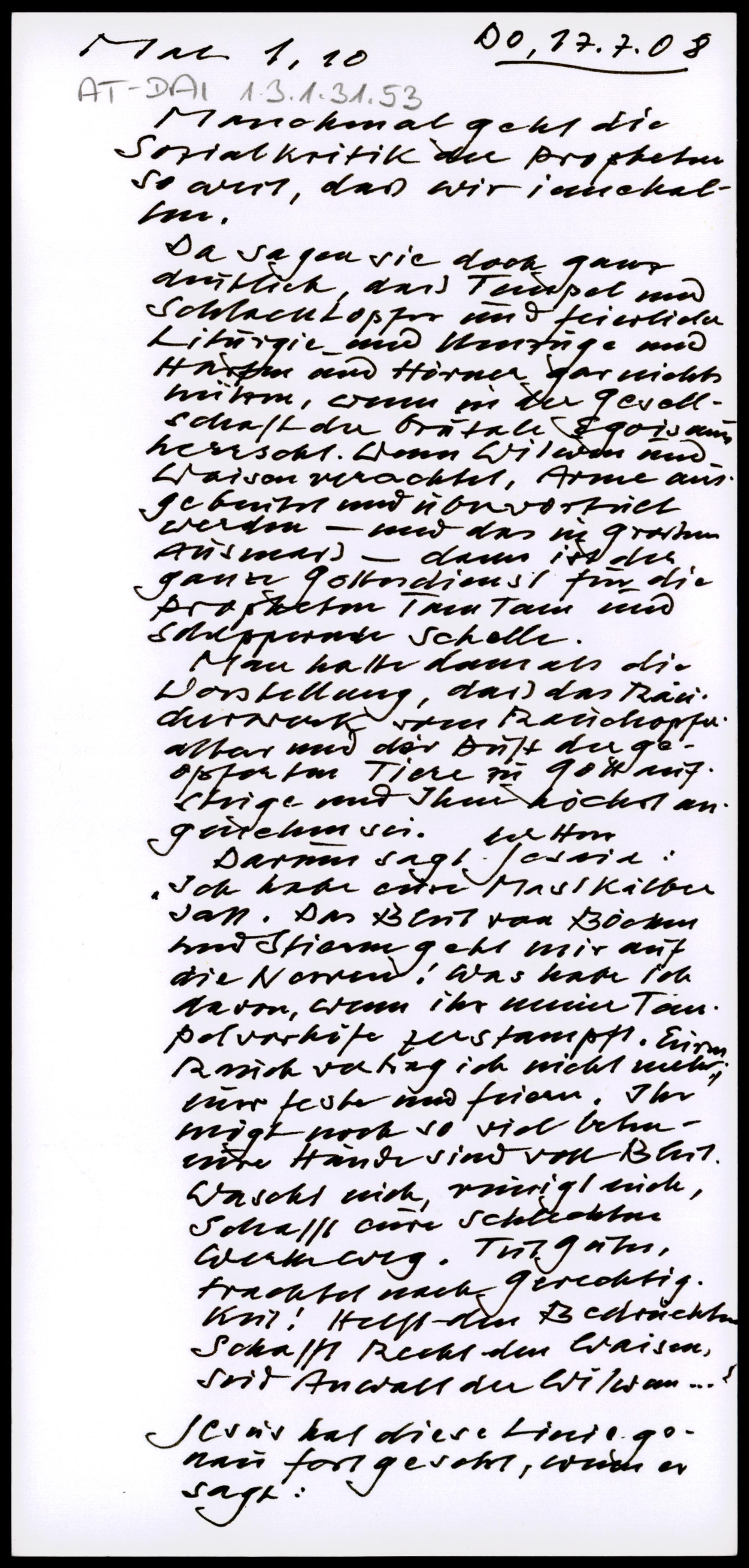 Die Sozialkritik der Propheten geht soweit, dass wir innehalten