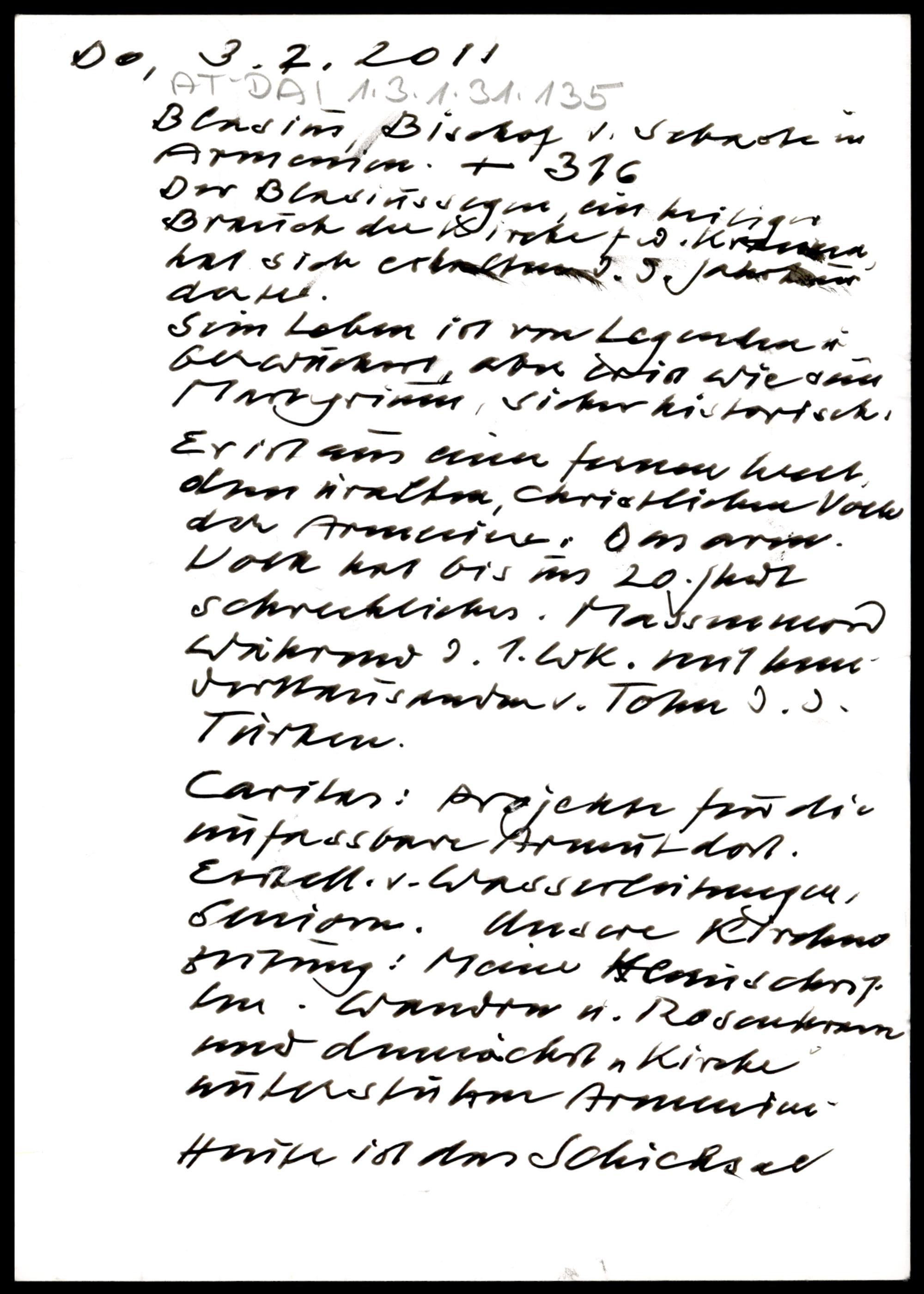 Blasius, Bischof v. Sebaste in Armenien