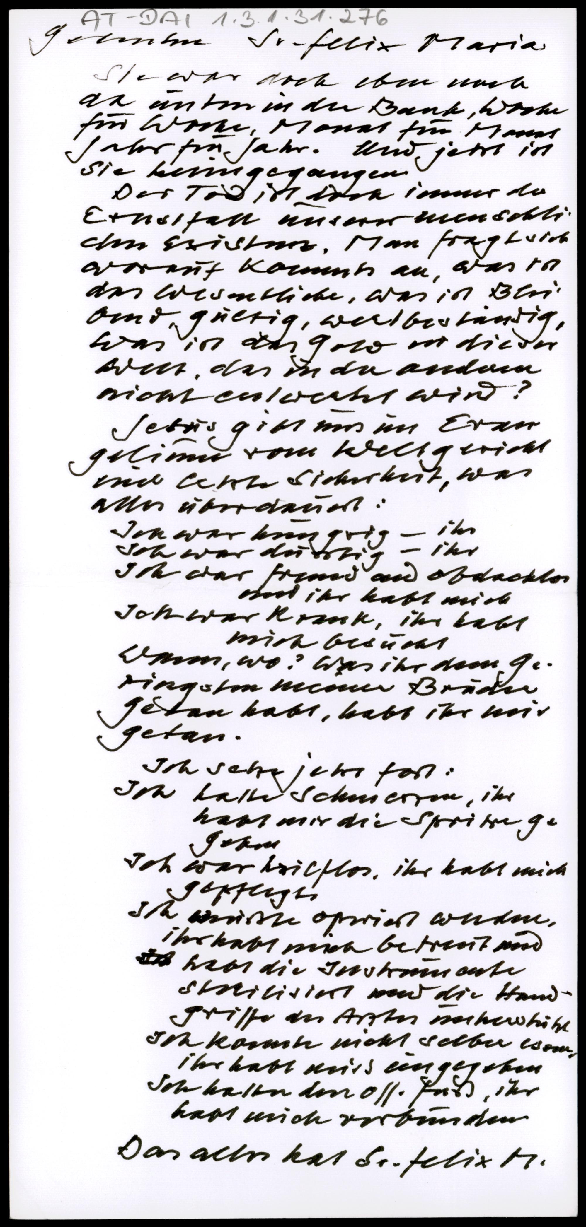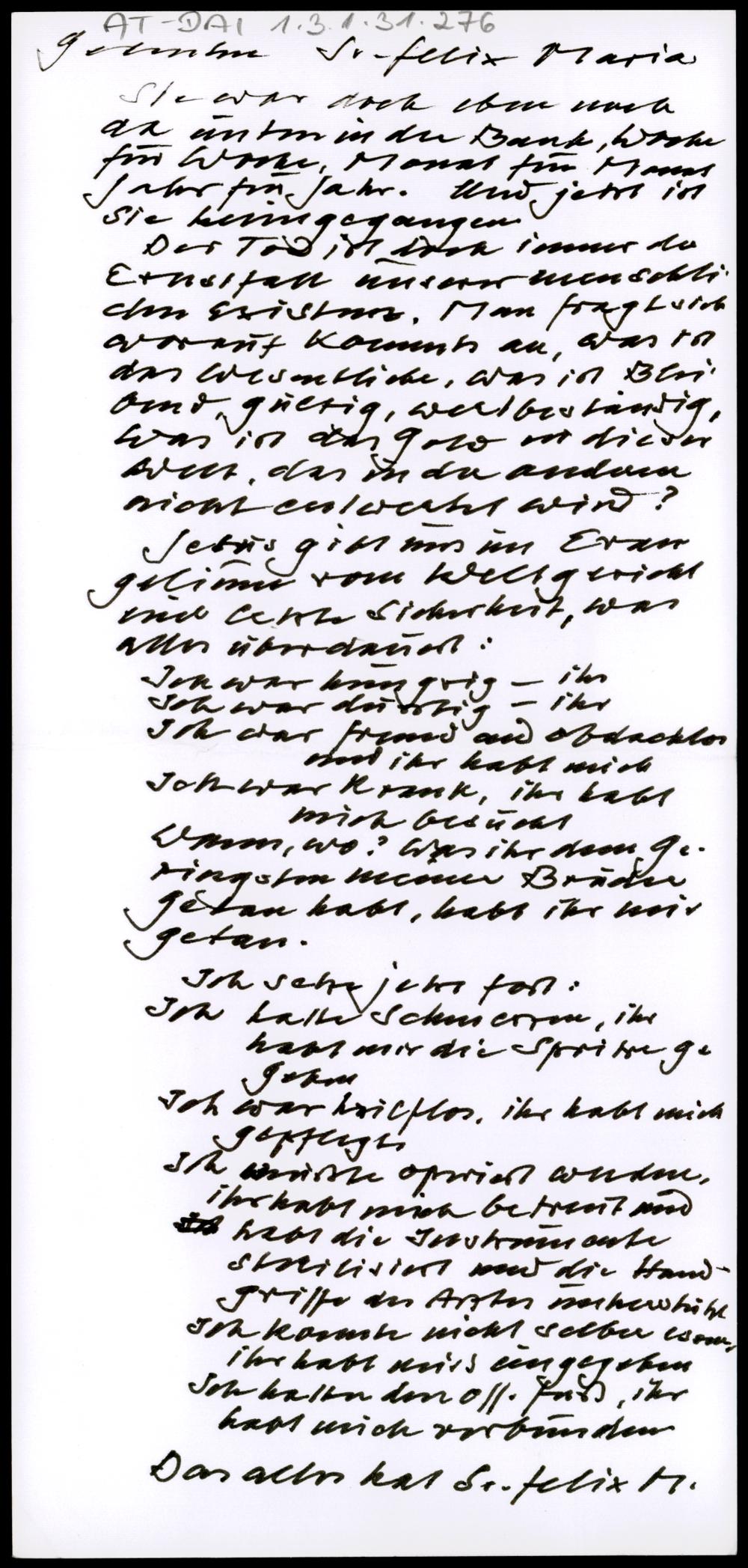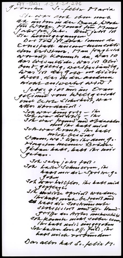 Gedenken Sr. Felix Maria