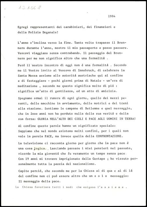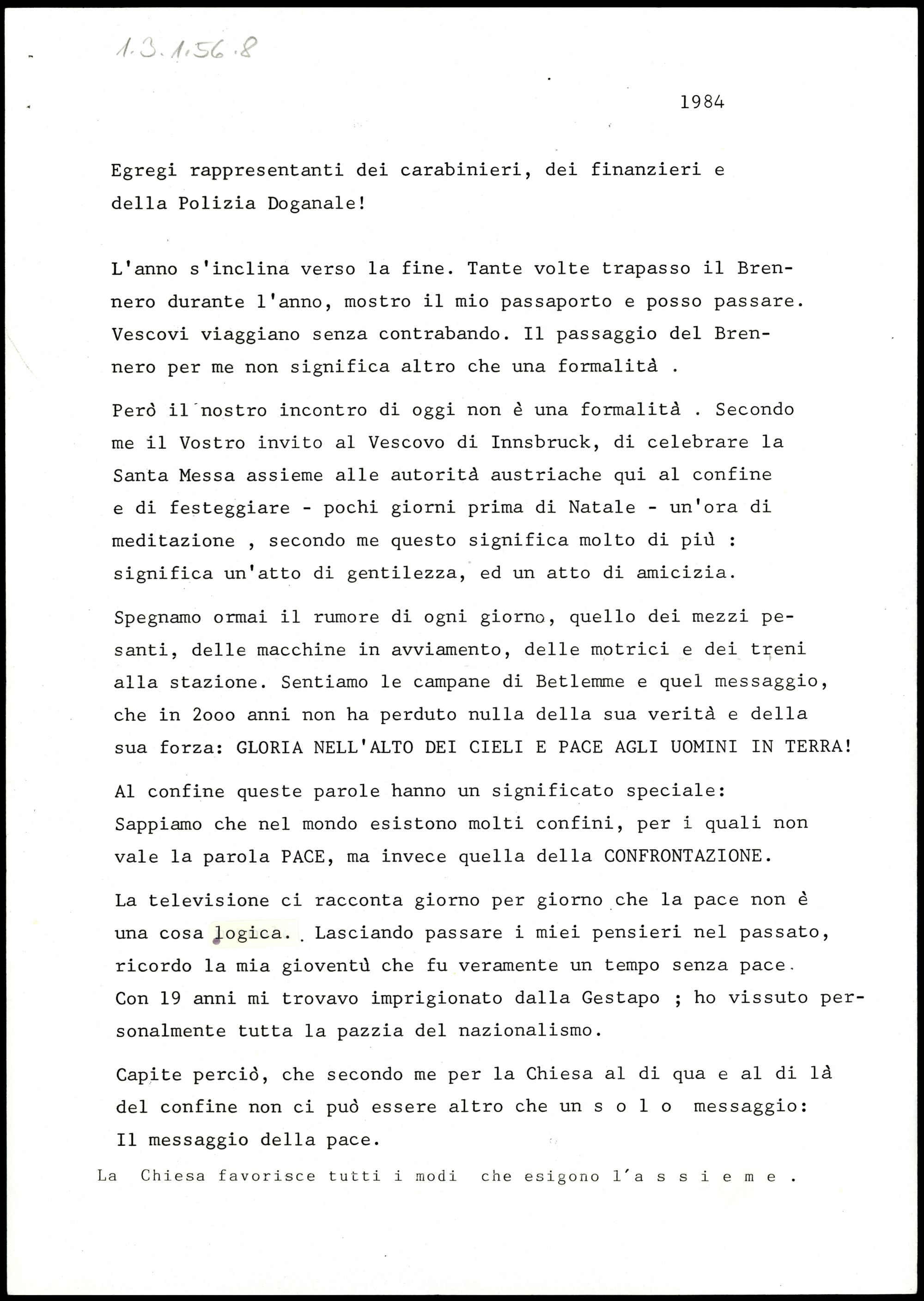 Weihnachtspredigt der Finanzpolizei und Karabinieri und Grenzpolizisten