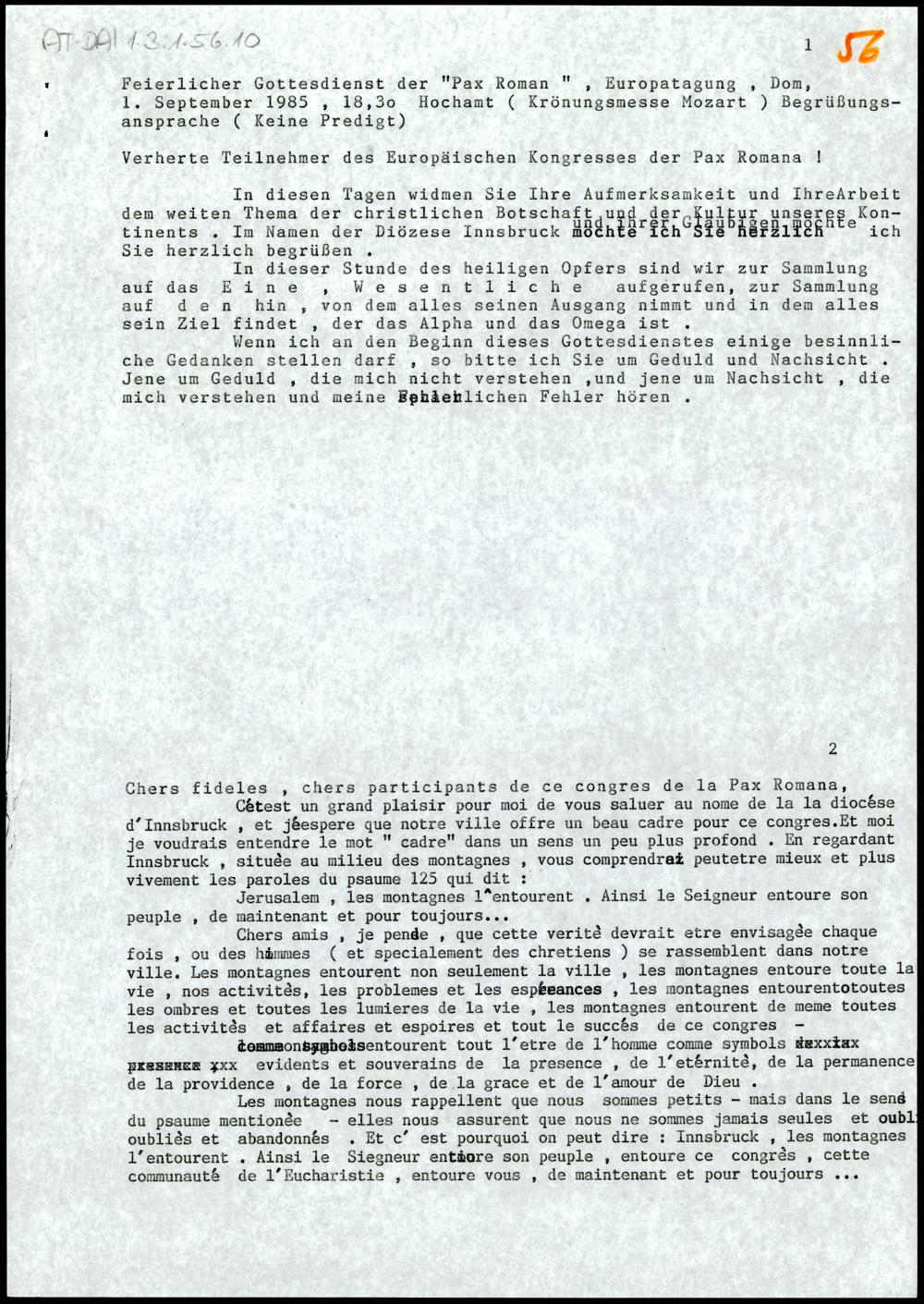 Feierlicher Gottesdienst der "Pax Romana", Europatagung