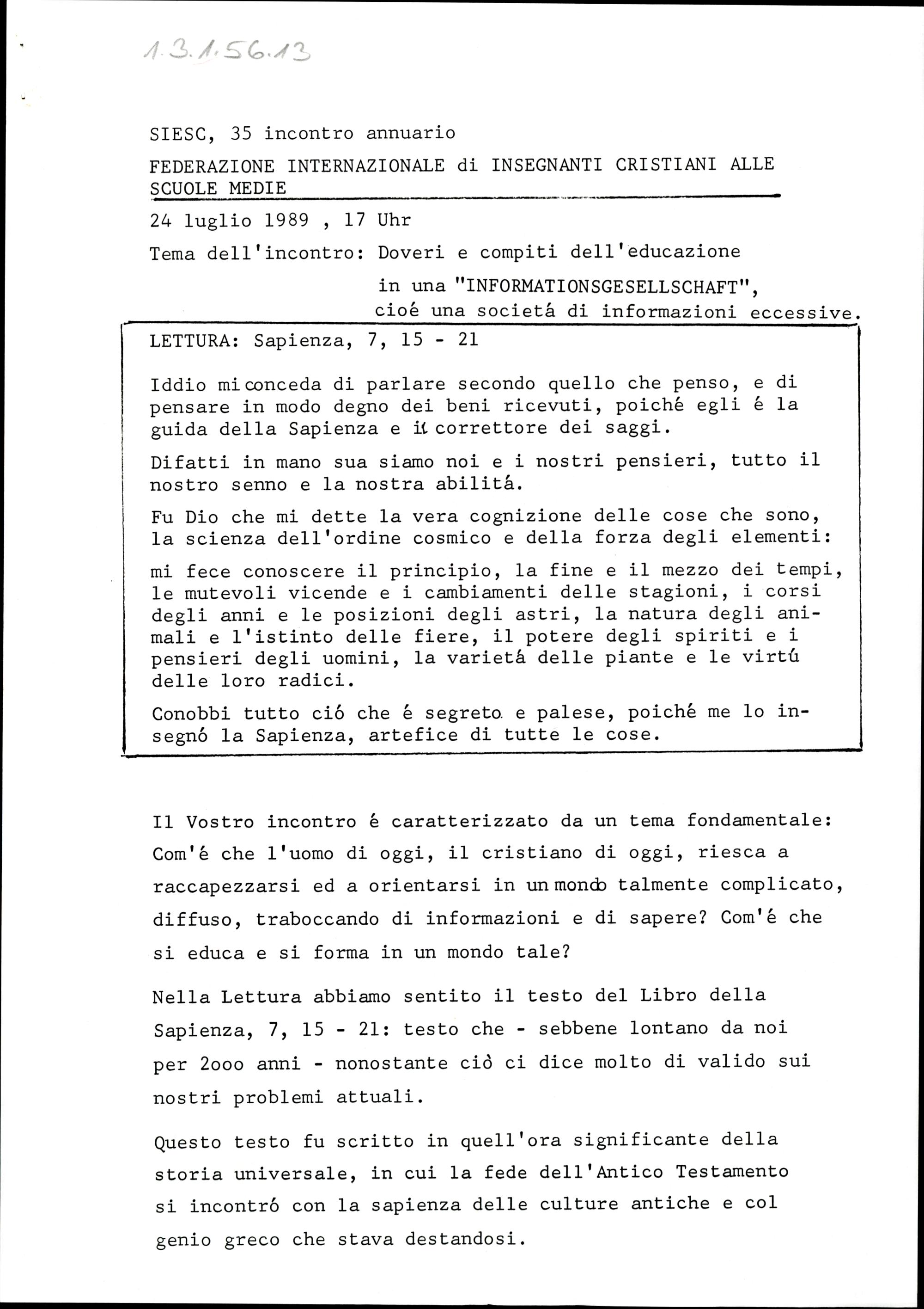 SIESC, 35. Jahrestagung (Internationaler Verband christlicher Lehrer an Höheren und...