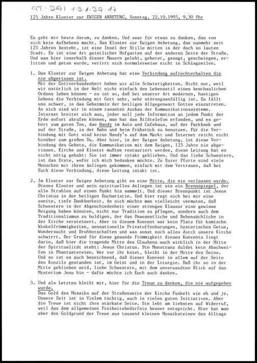 125 Jahre Kloster zur Ewigen Anbetung
