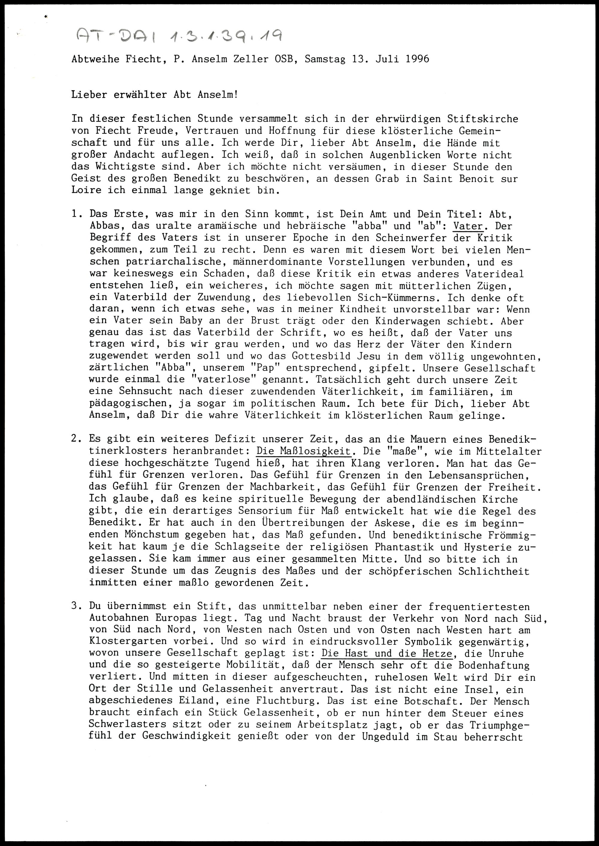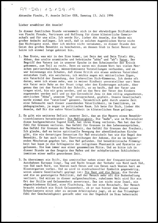 Abtweihe Pater Anselm Zeller OSB