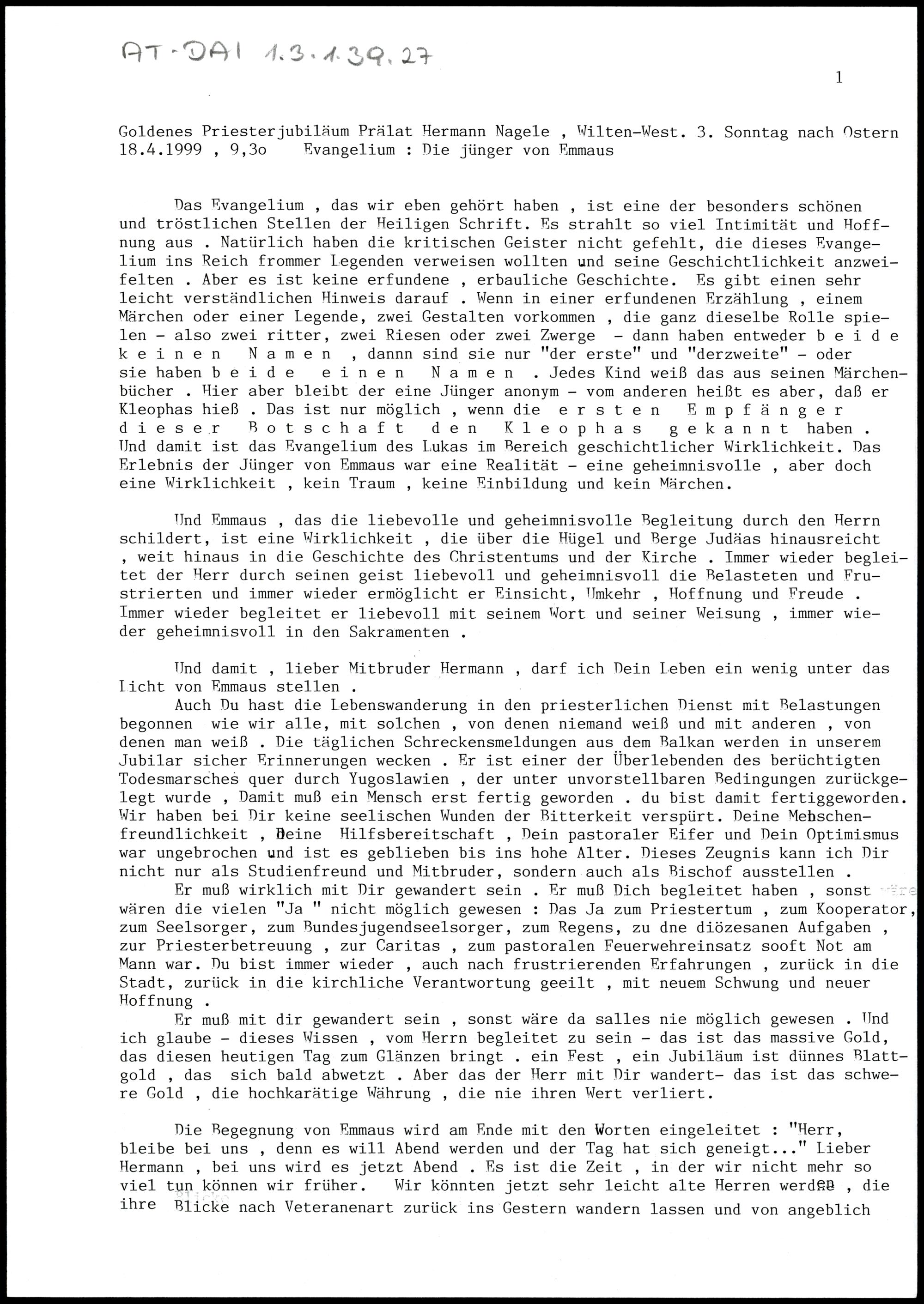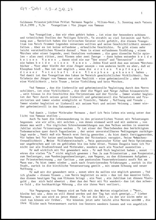 Goldenes Priesterjubiläum Prälat Hermann Nagele