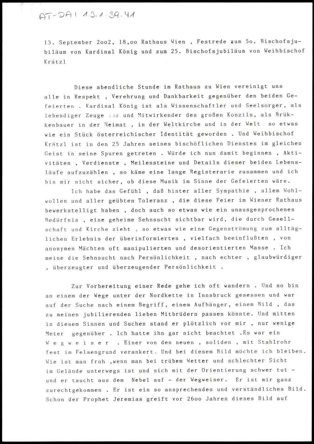 Bischofsjubiläum Kardinal König und Weihbischof Krätzl