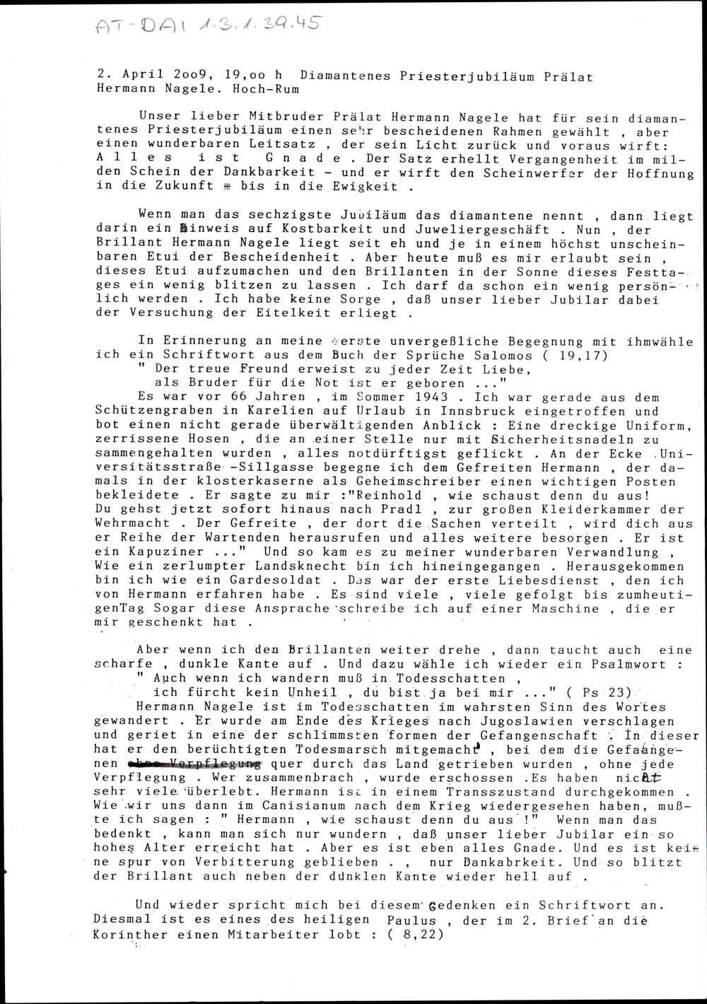 Diamantenes Priesterjubiläum Prälat Hermann Nagele