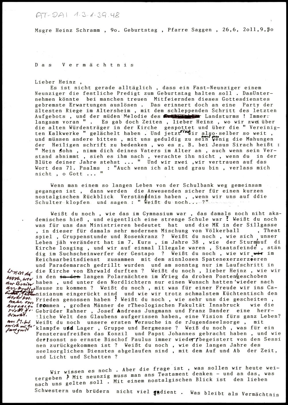 Nachlass Bischof Stecher