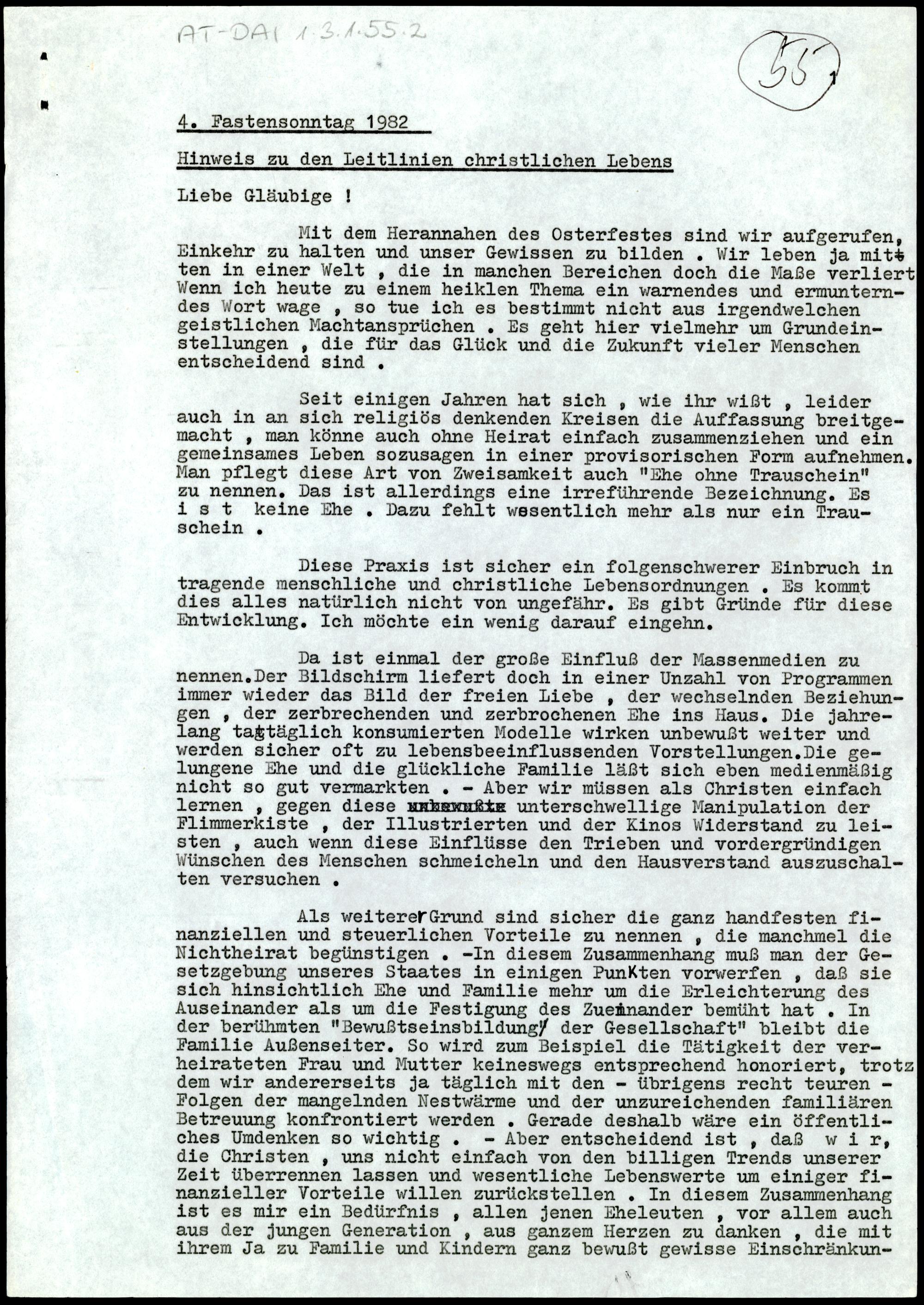 Hinweis zu den Leitlinien christlichen Lebens