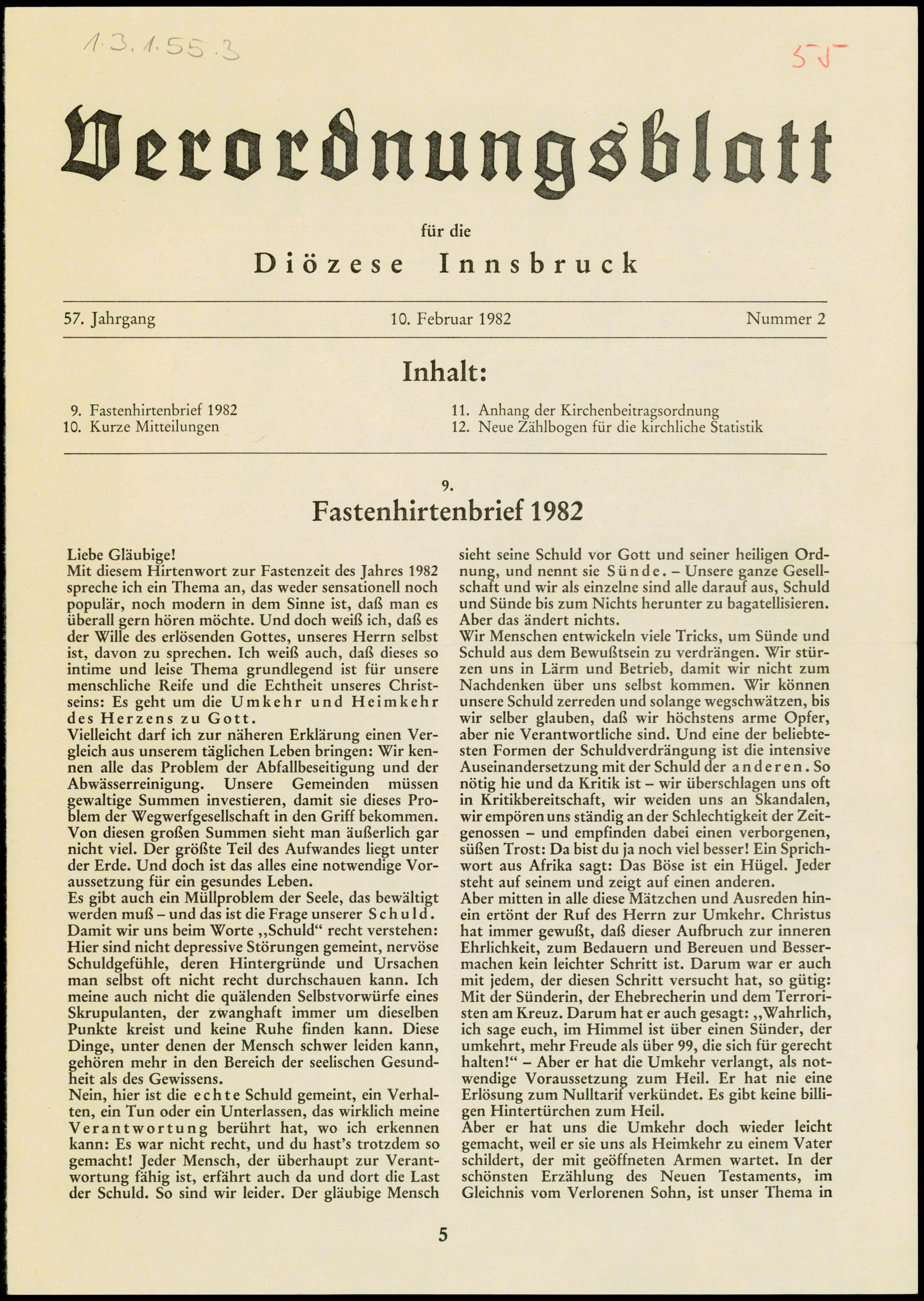 Auszug aus Verordnungsblatt für die Diözese Innsbruck, 10.2.1982