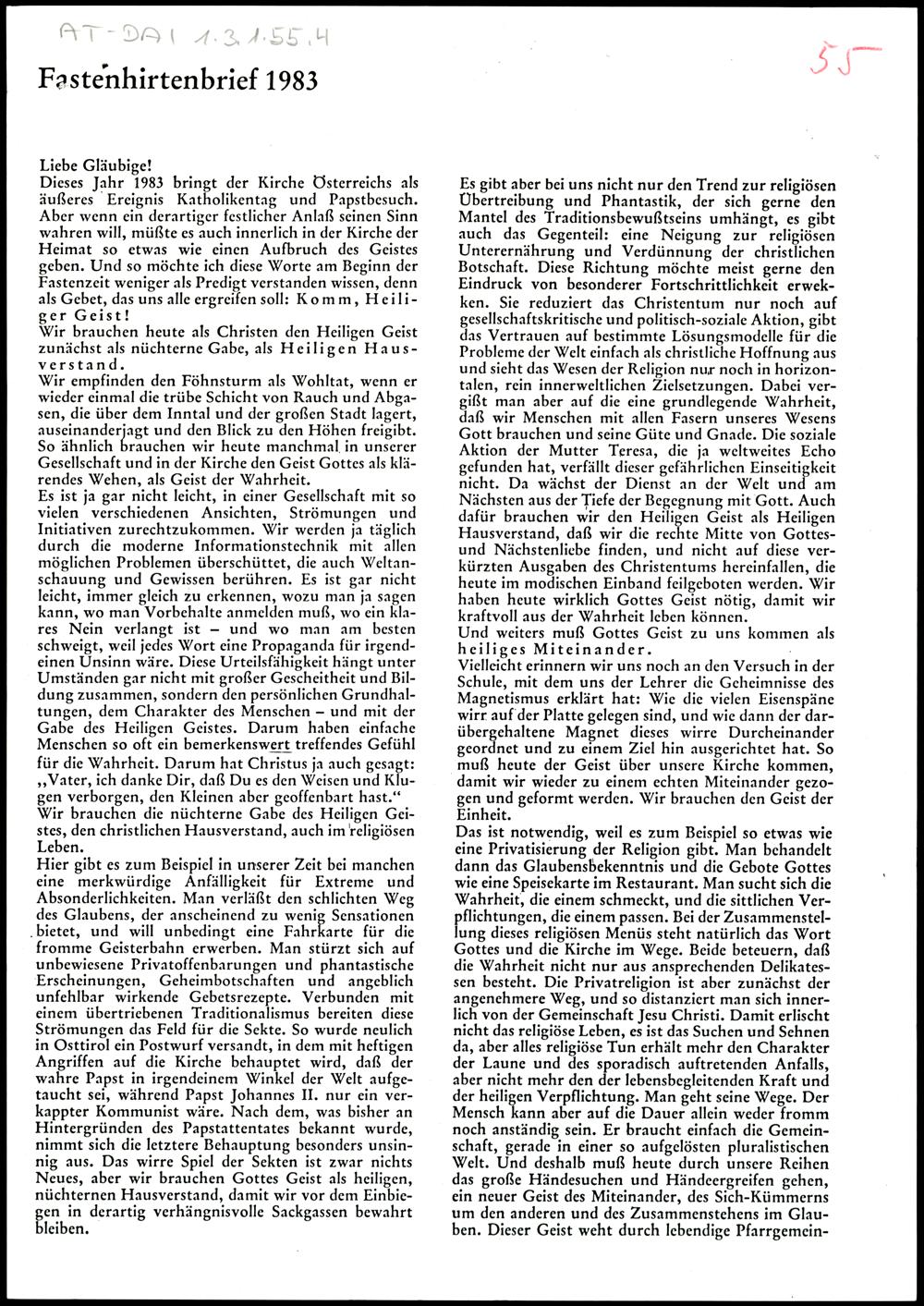 Fastenhirtenbrief 1983