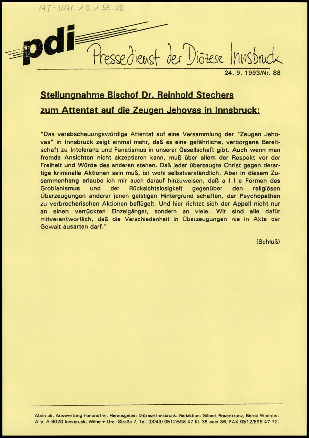 Stellungnahme auf die Zeugen Jehovas in Innsbruck
