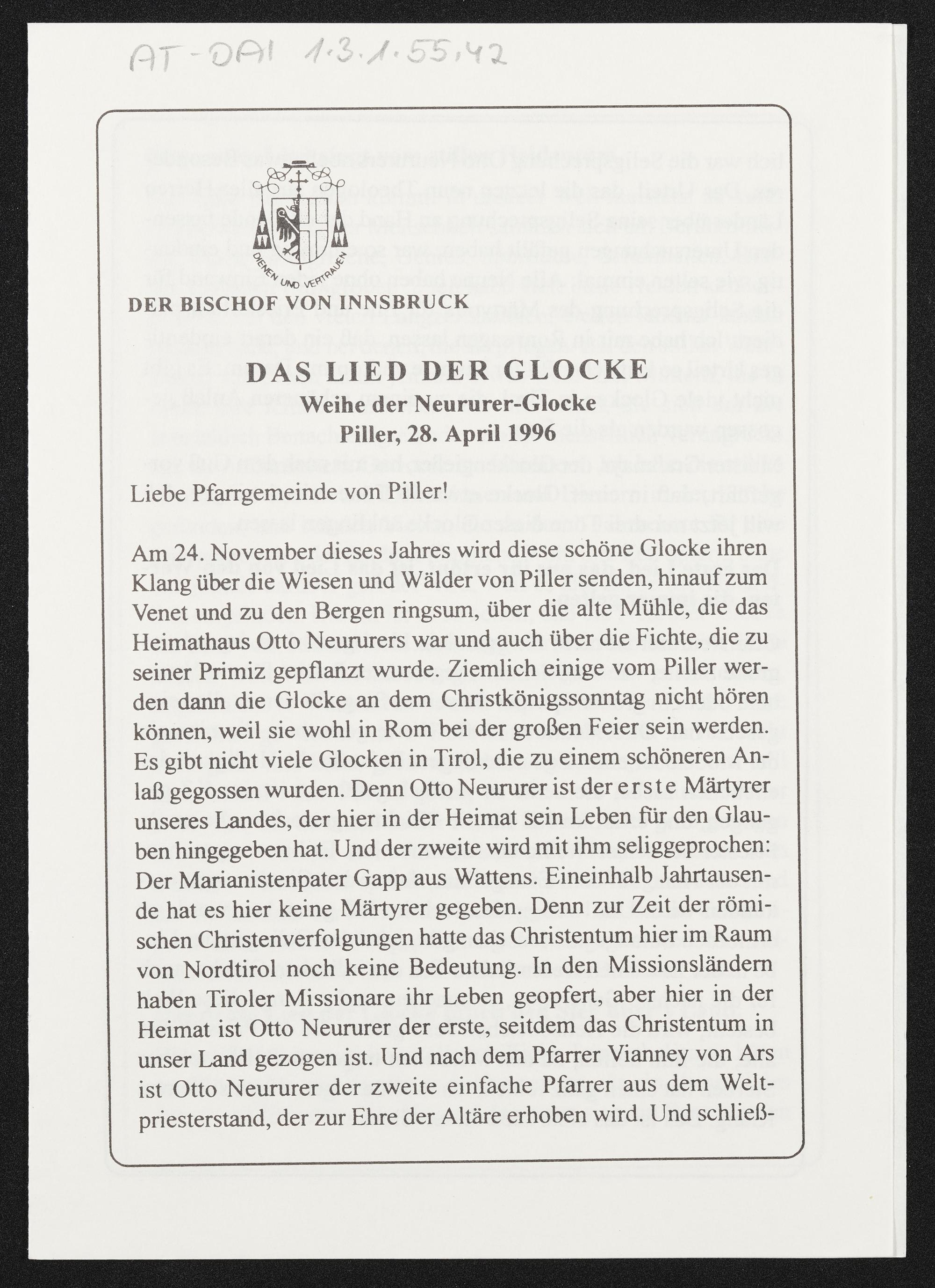 Nachlass Bischof Stecher