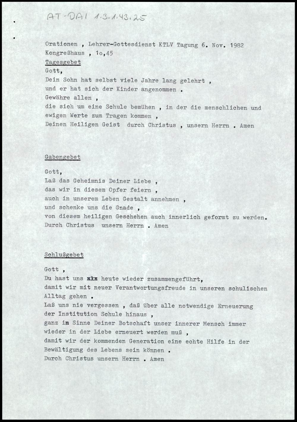 Orationen, Lehrer-Gottesdienst KTLV Tagung