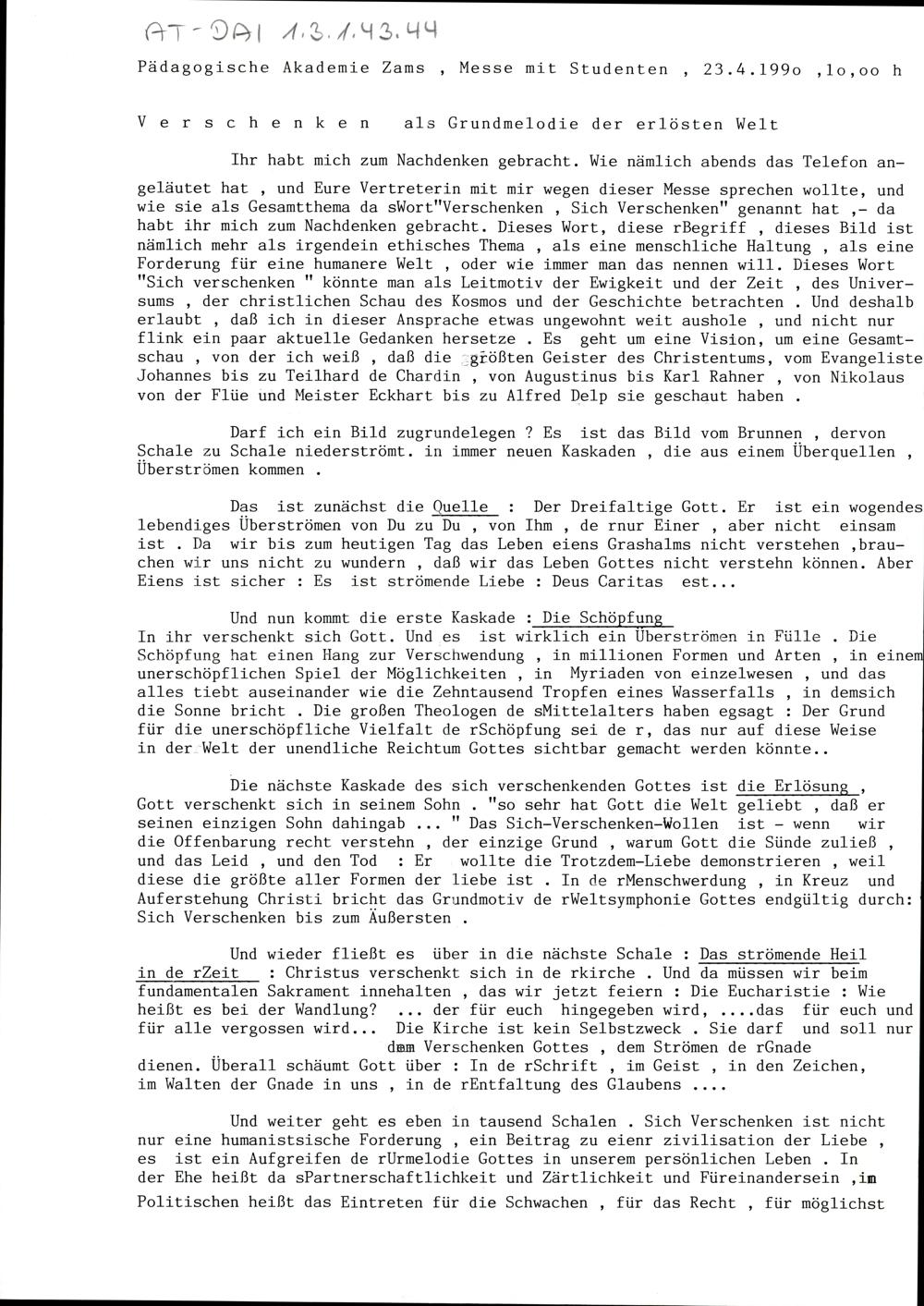 Verschenken als Grundmelodie der erlösten Welt