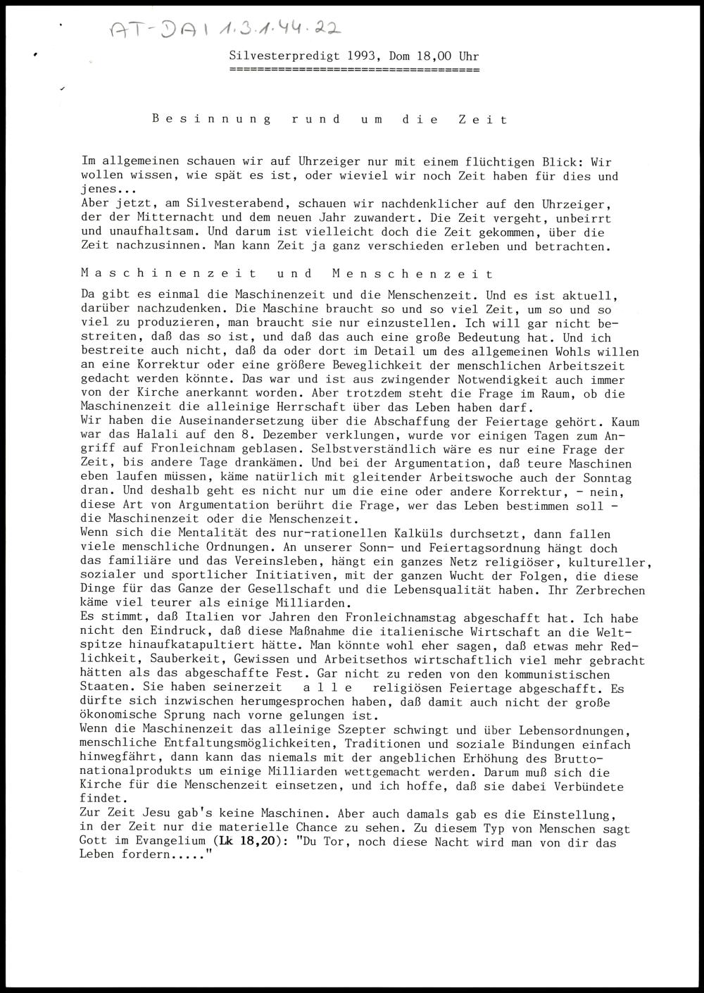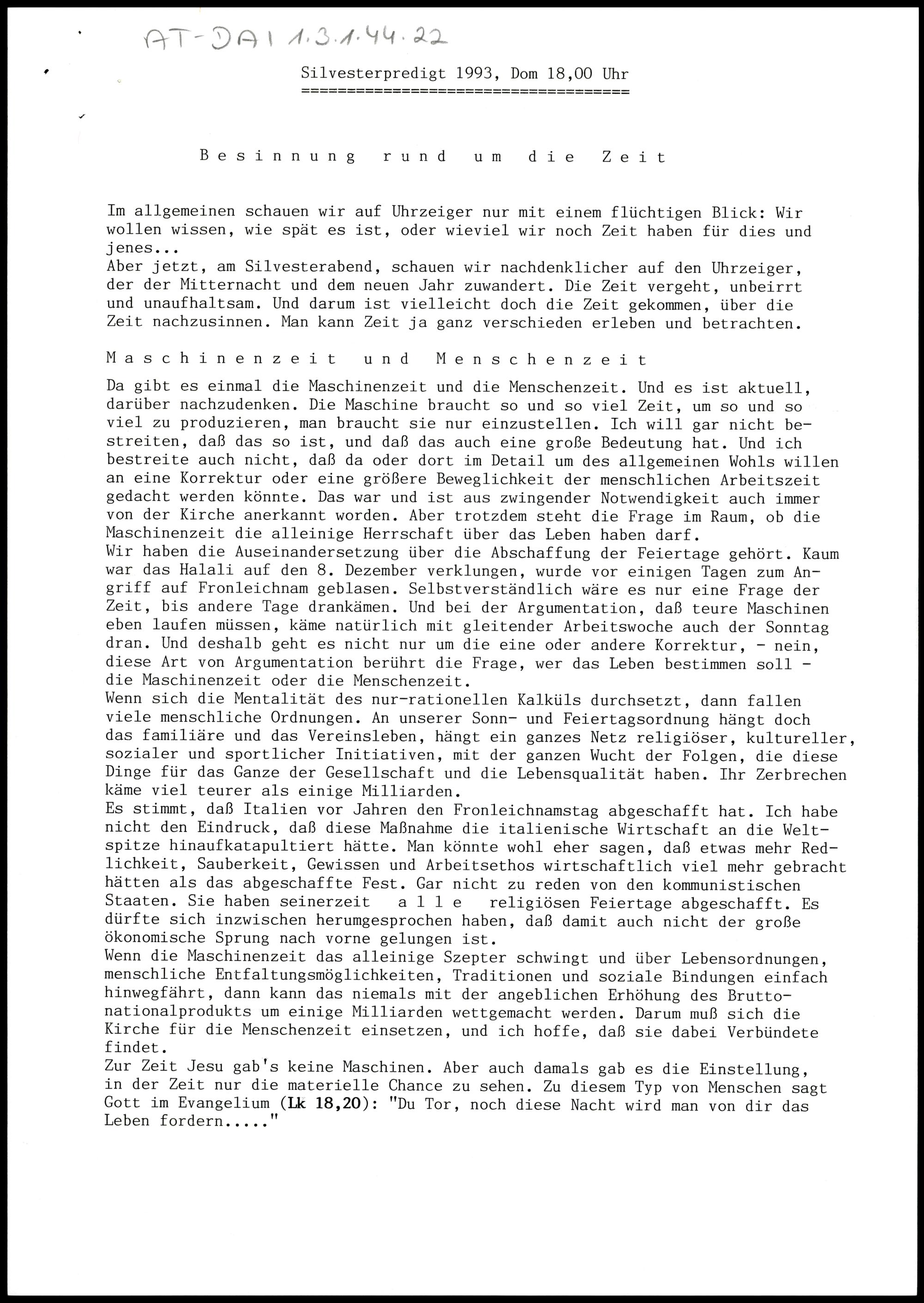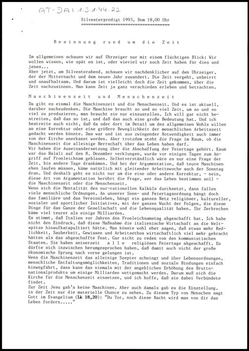 Besinnung rund um die Zeit