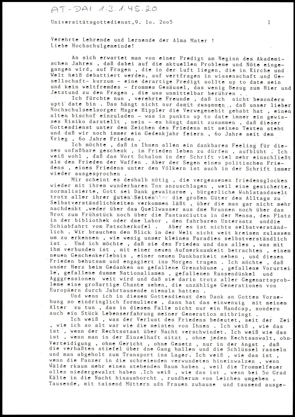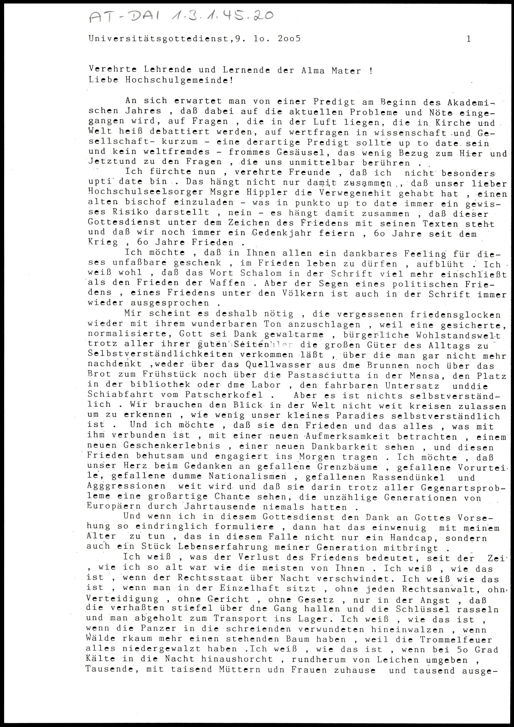 Verehrte Lehrende und Lernende der Alma Mater! Liebe Hochschulgemeinde!
