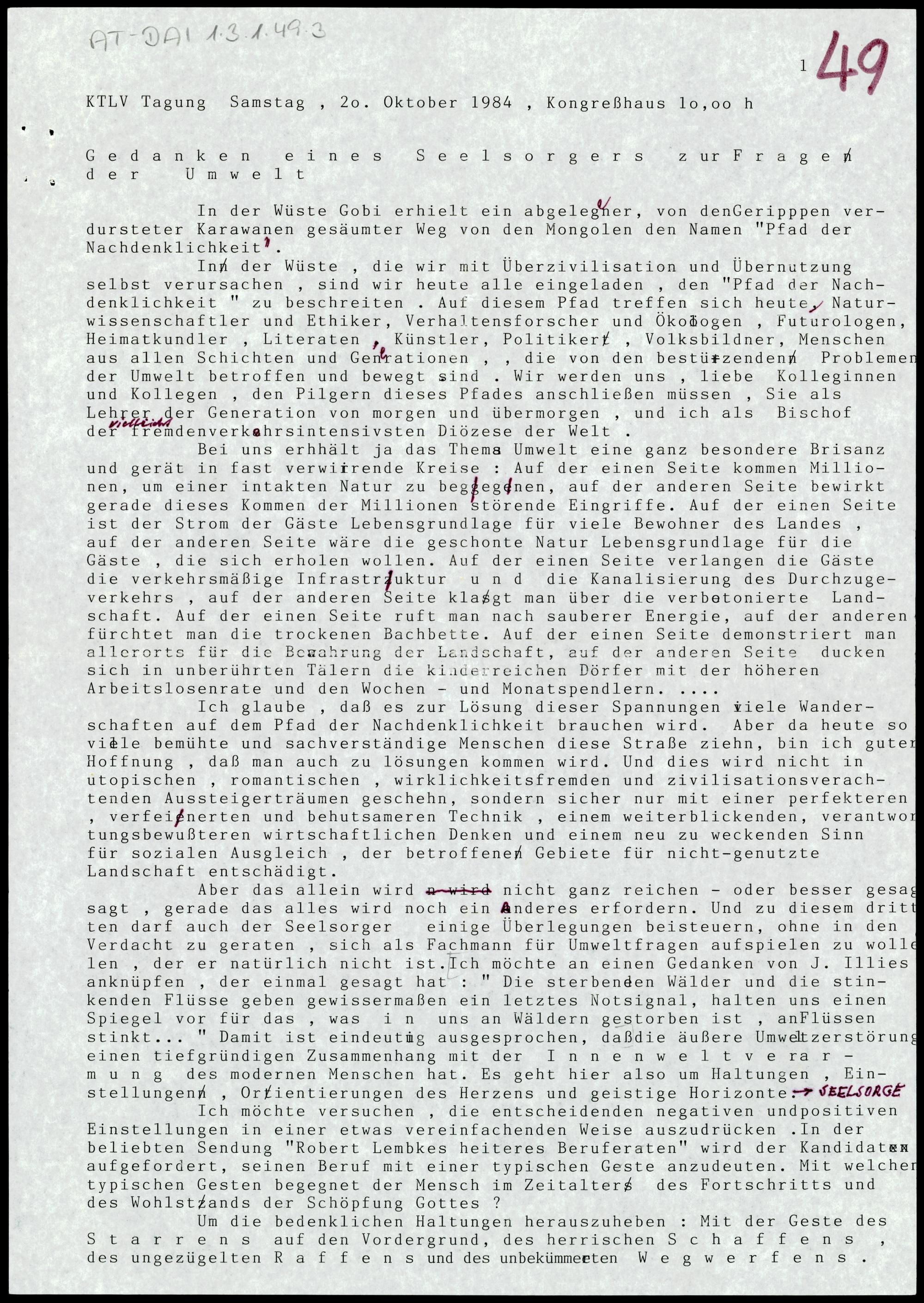 Gedanken eines Seelsorgers zur Frage der Umwelt