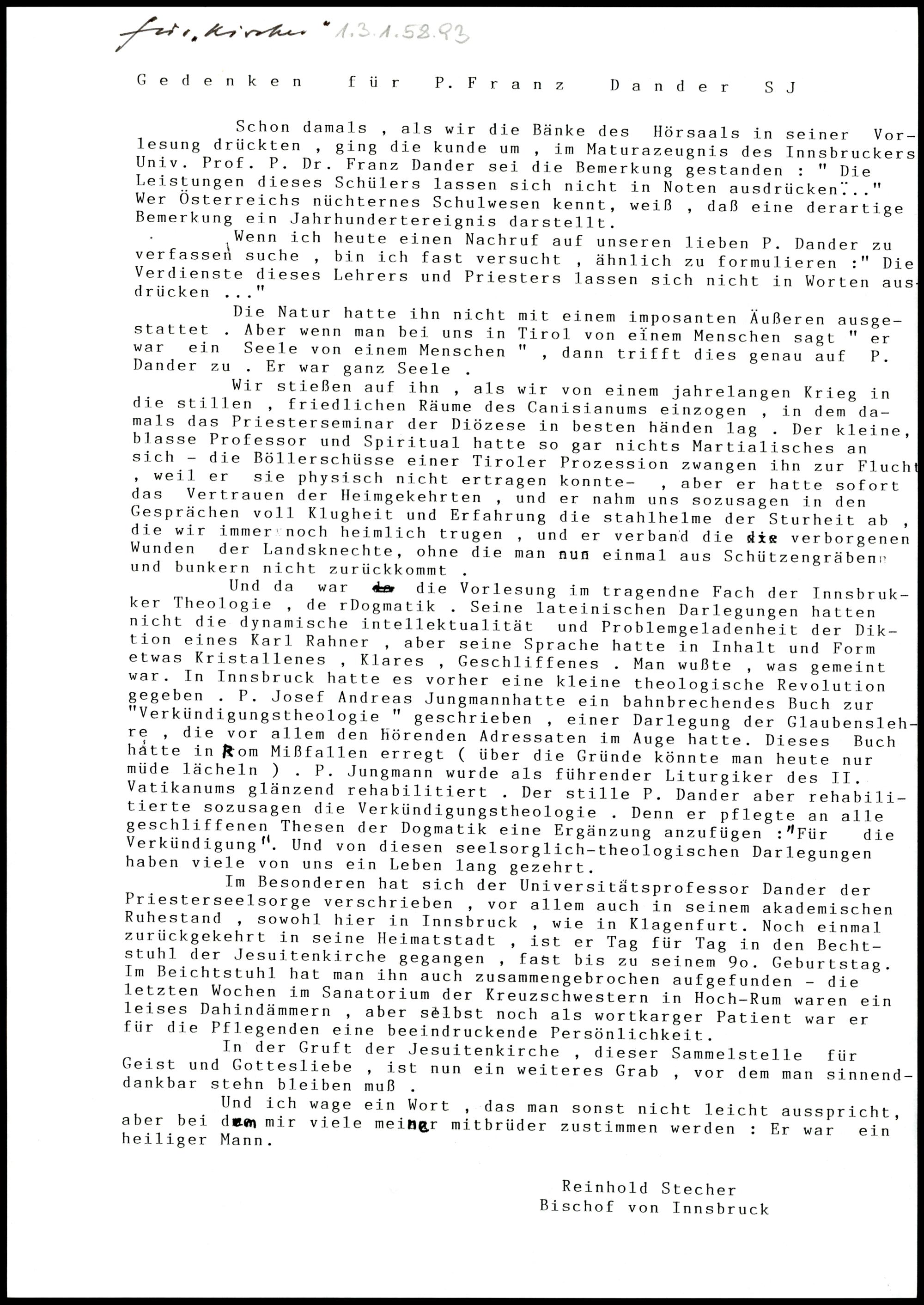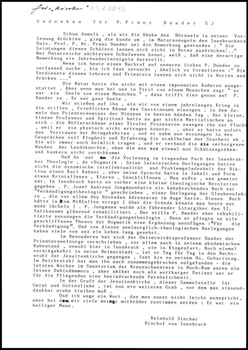 Gedenken für P. Franz Dander SJ