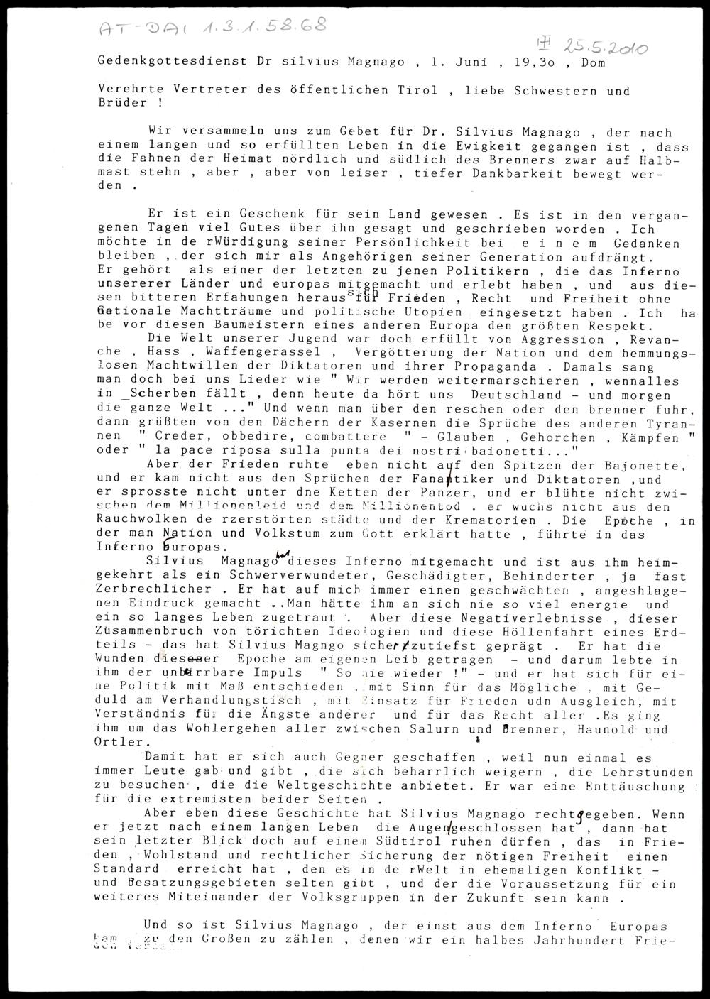 Gedenkgottesdienst für Dr. Silvius Magnago