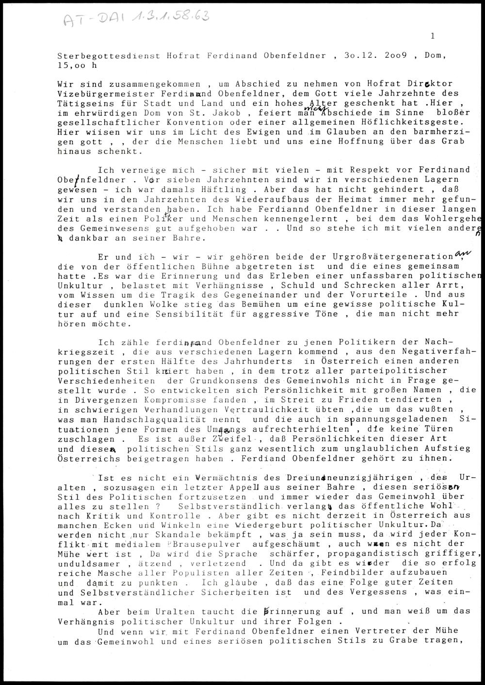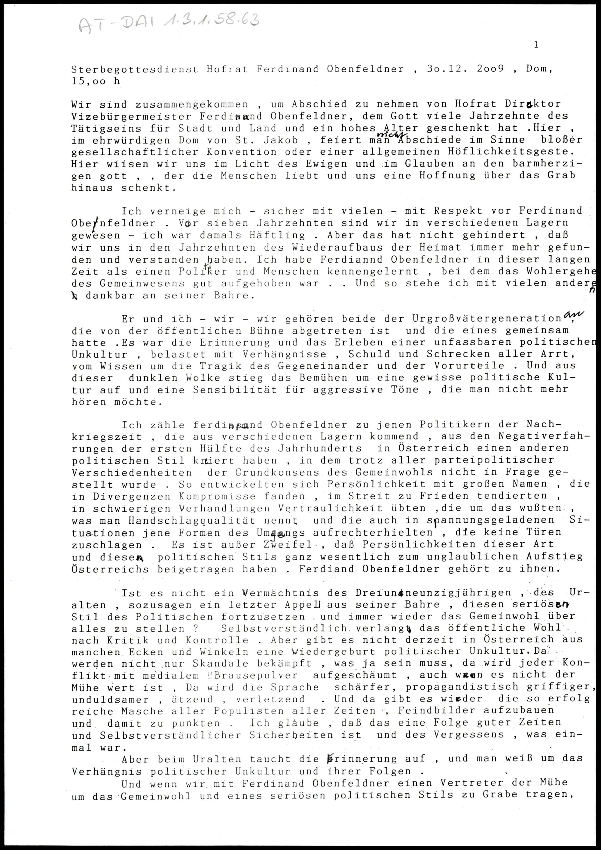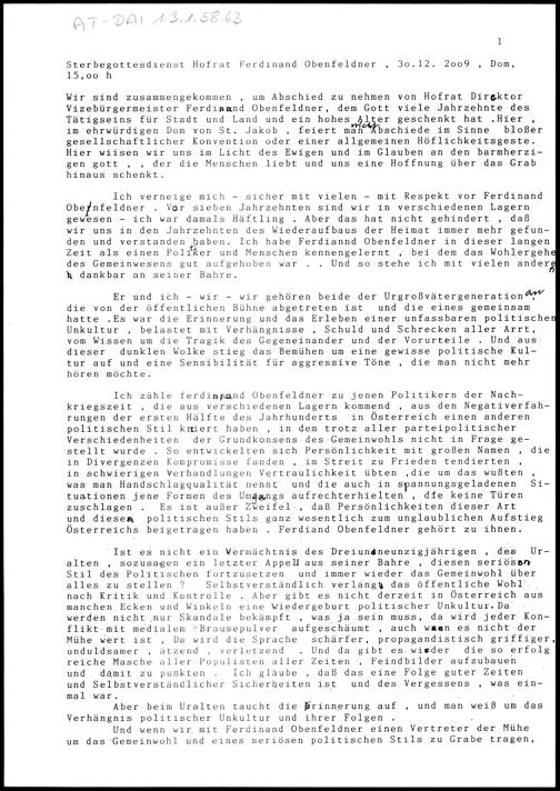 Sterbegottesdienst Hofrat Ferdinand Obenfeldner