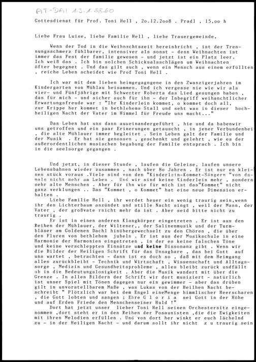 Gottesdienst für Prof. Toni Hell