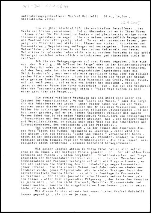 Auferstehungsgottesdienst für Manfred Gabrielli