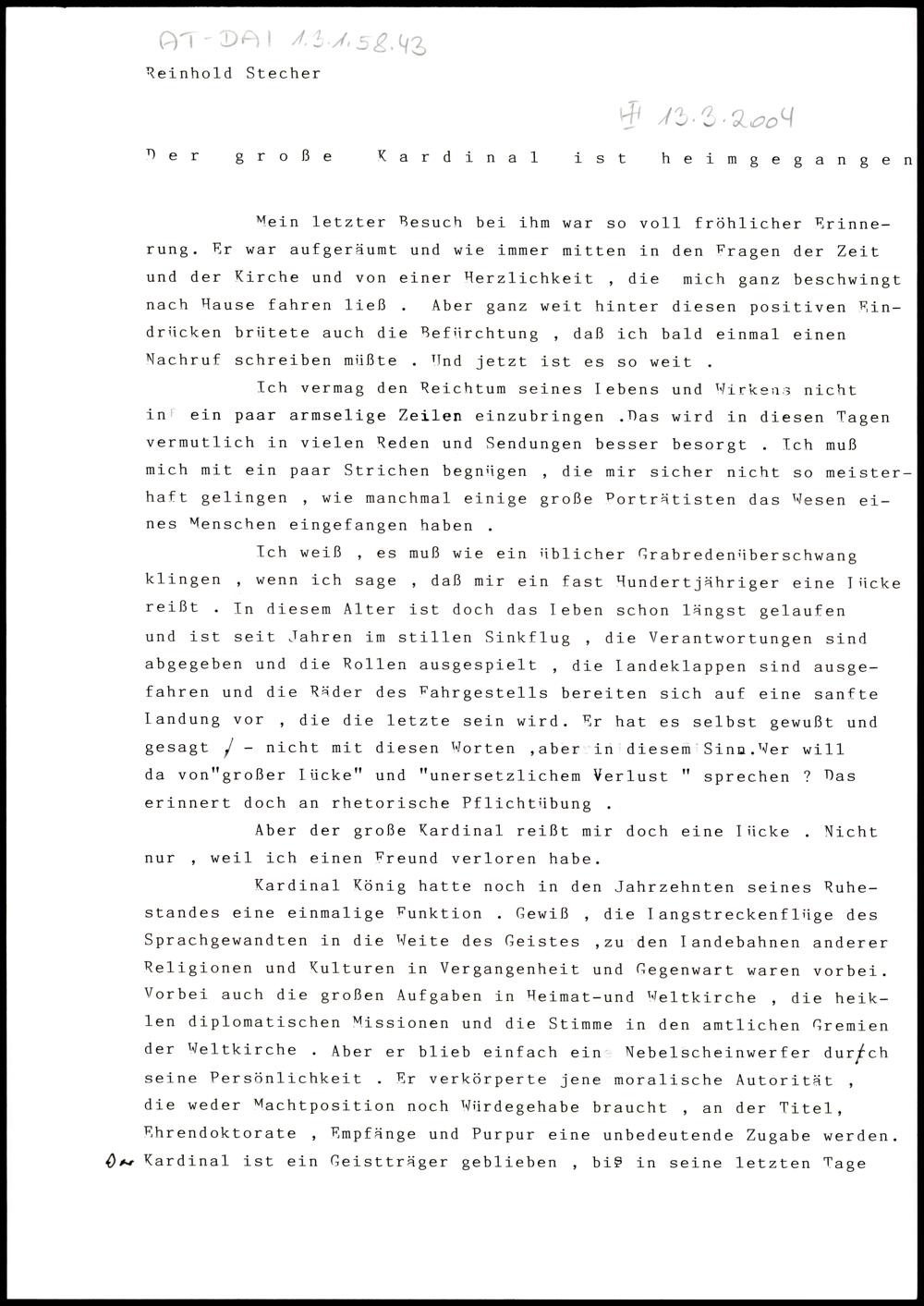 Der große Kardinal ist heimgegangen