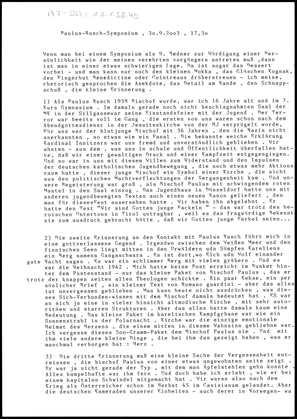 Erinnerungnen an Bischof Paulus Rusch