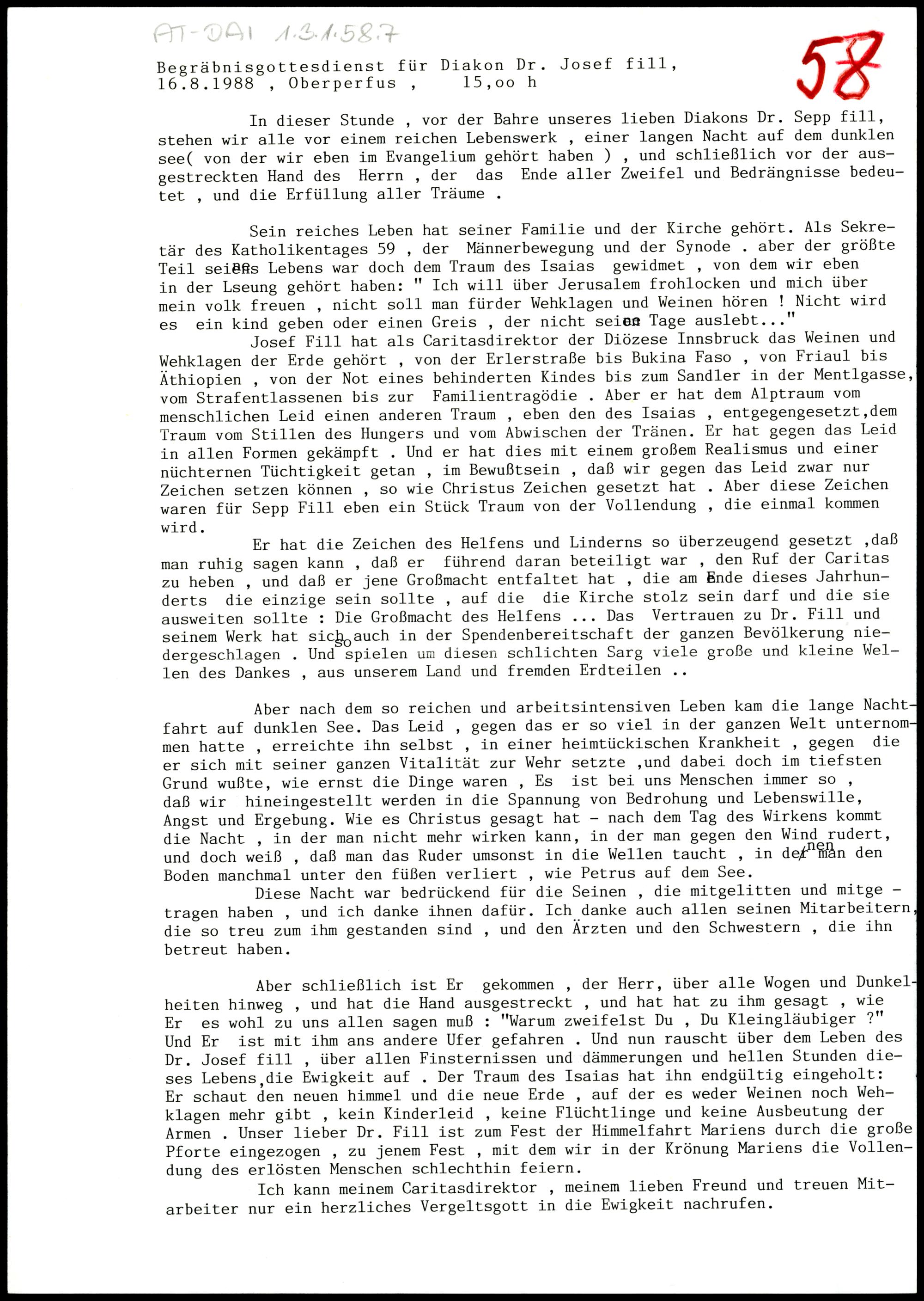Begräbnisgottesdienst für Diakon Dr. Josef Fill