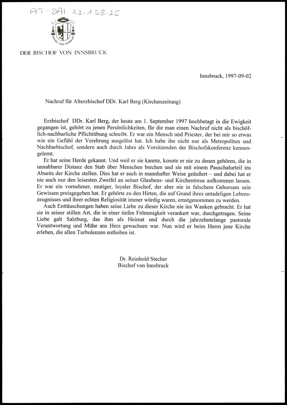 Nachlass Bischof Stecher