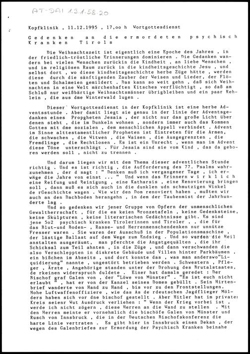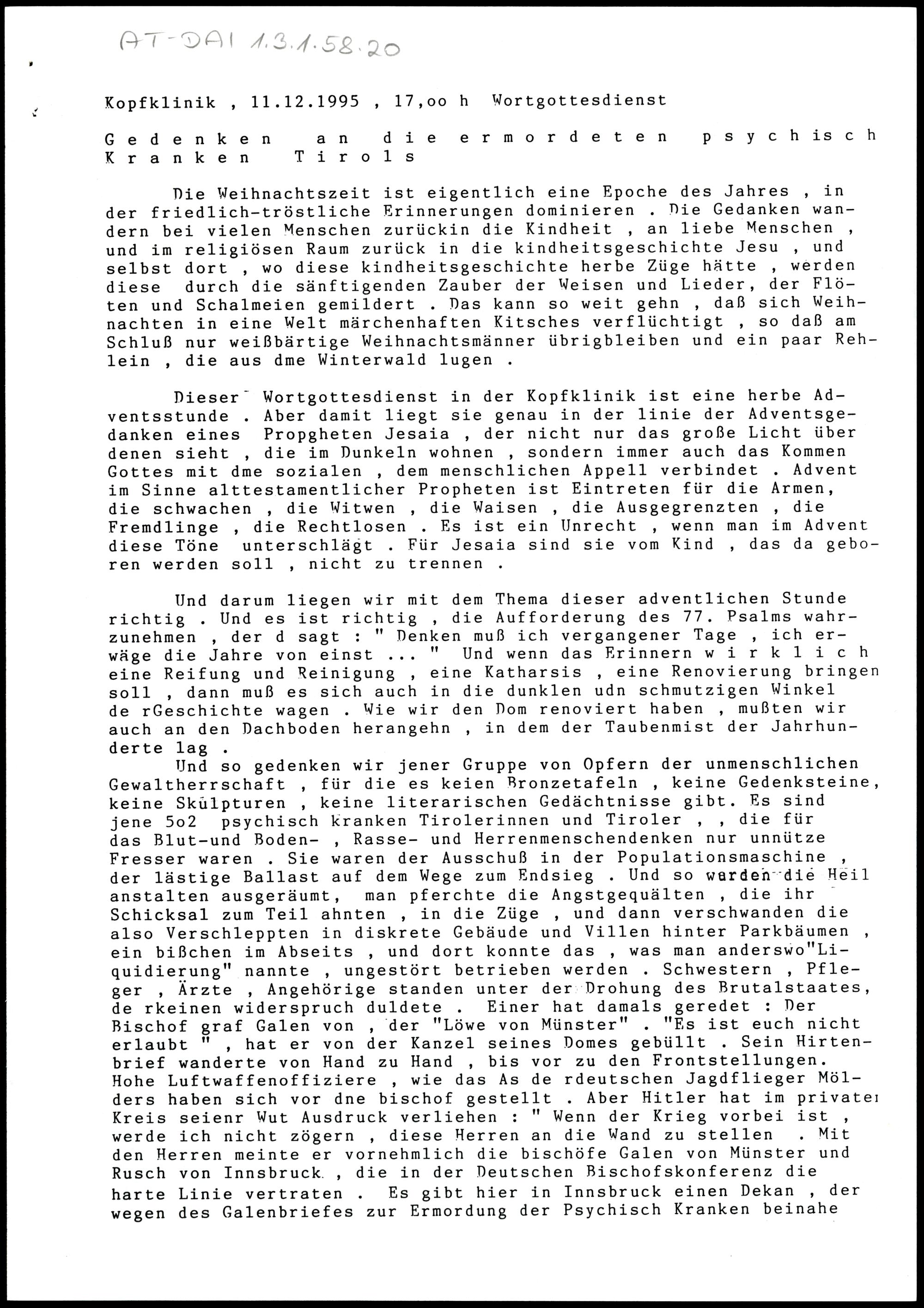 Gedenken an die ermordeten psychisch Kranken Tirols