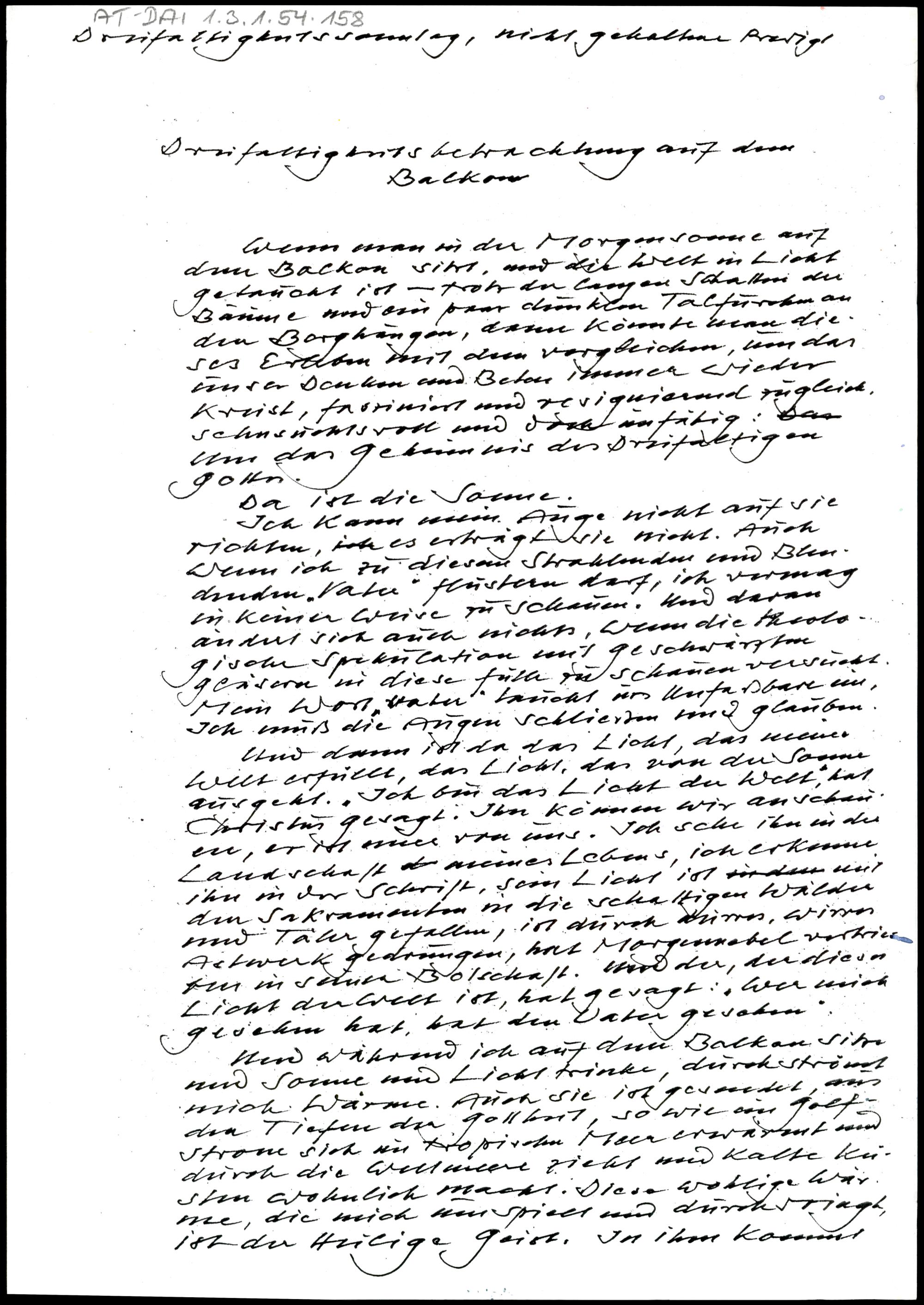Dreifaltigkeitsbetrachtung auf dem Balkon