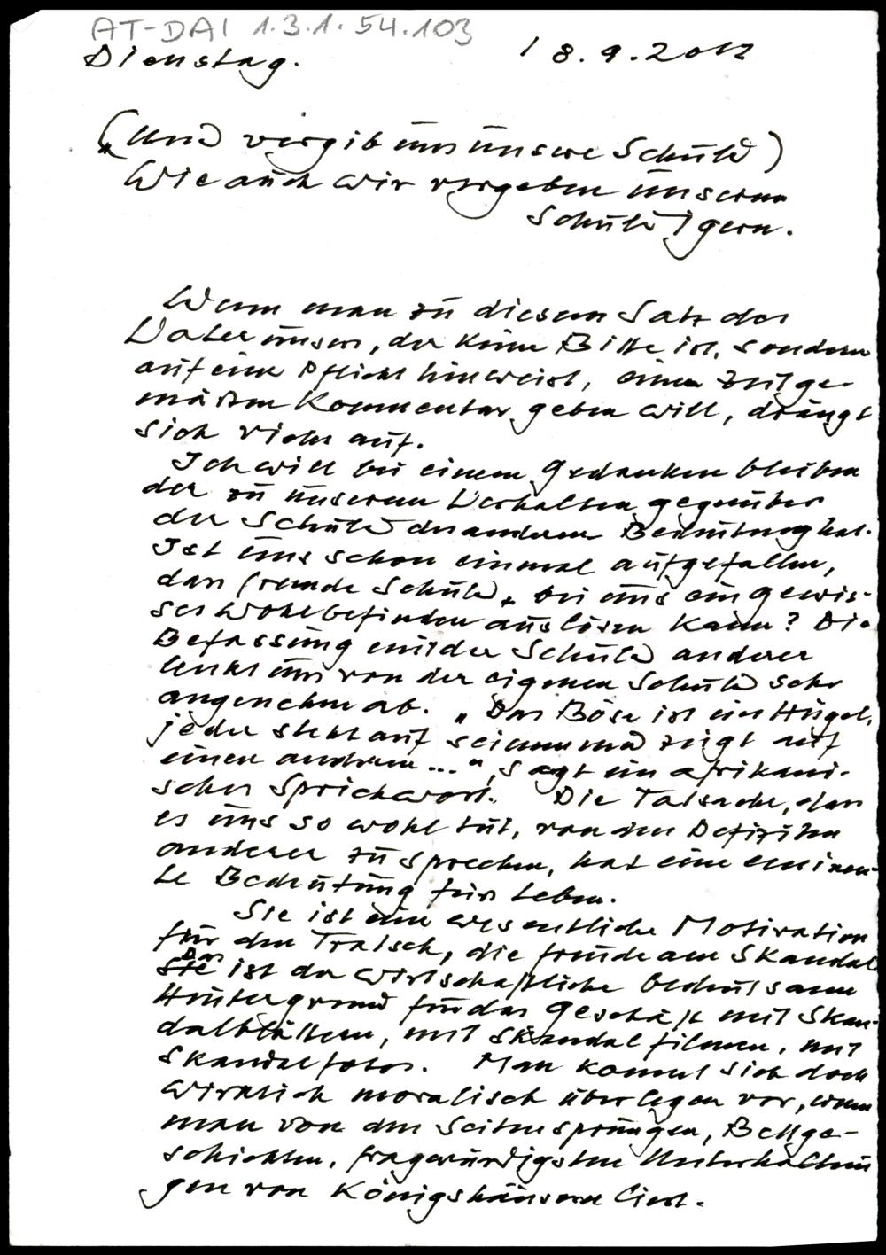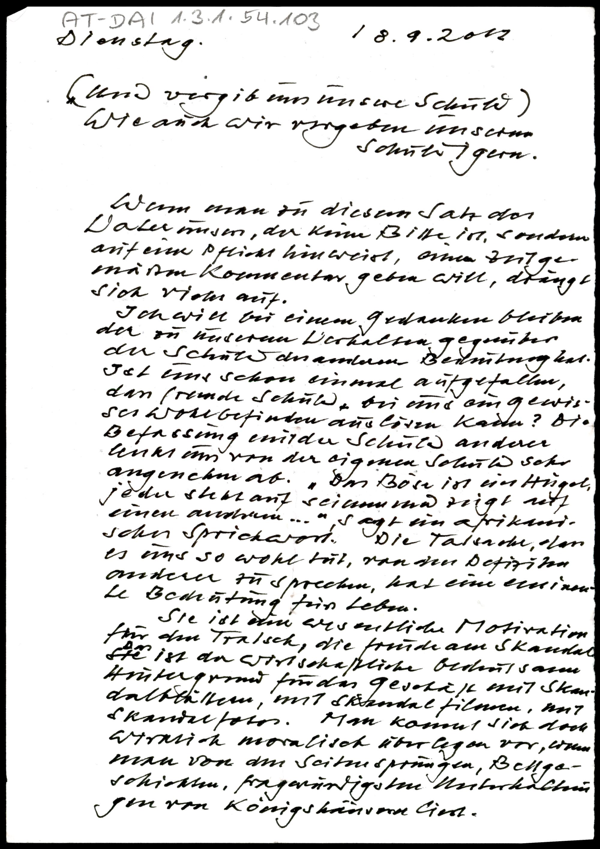 (Und vergib uns unsere Schuld) Wie auch wir vergeben unseren Schuldigern