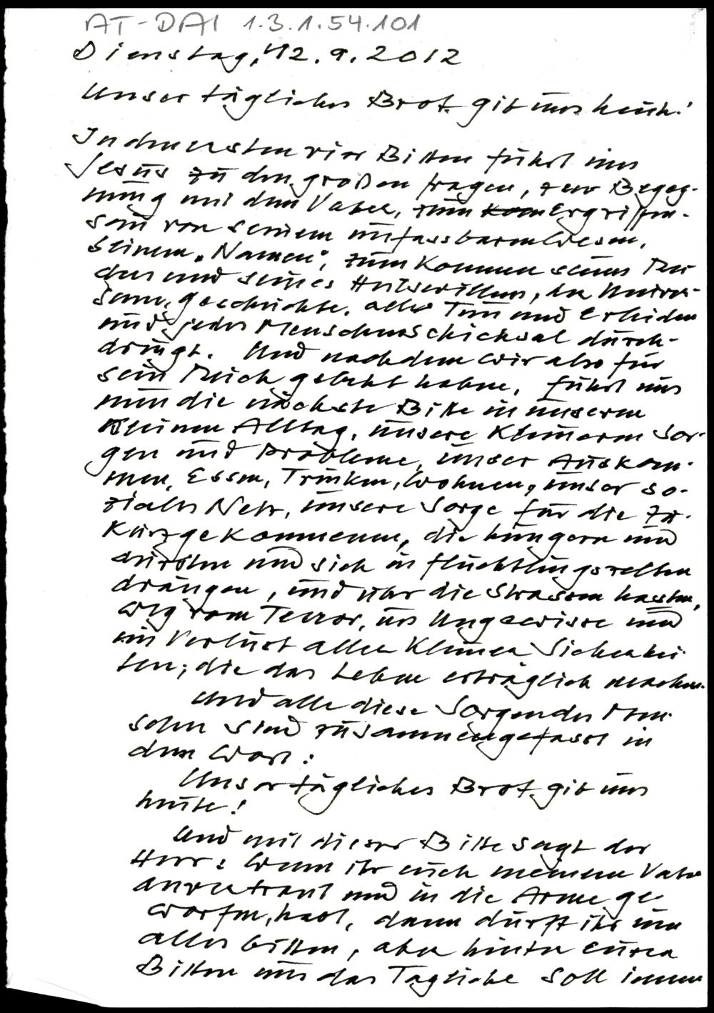 Unser tägliches Brot gib und heute.