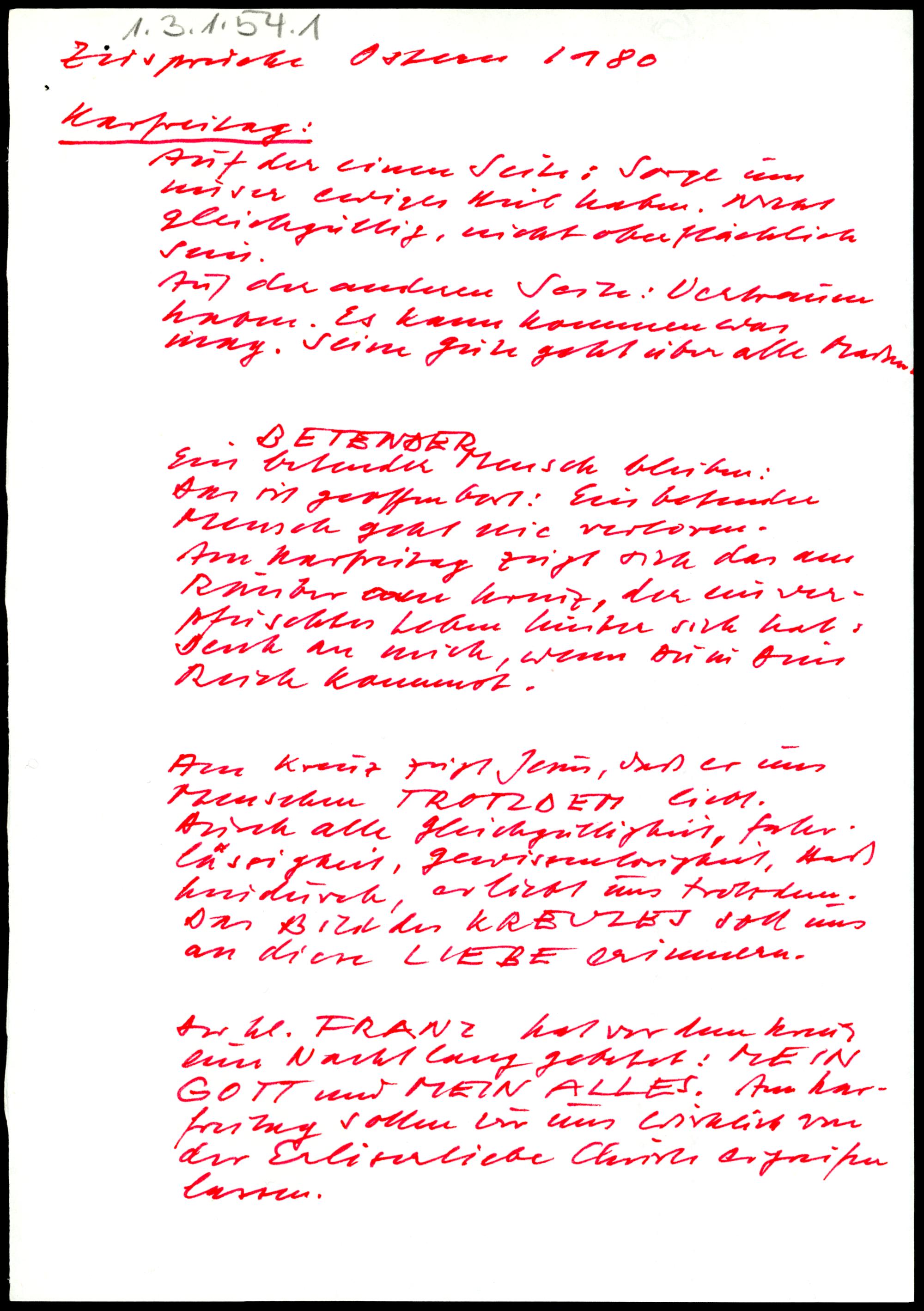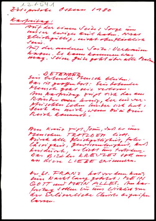 Ansprache für Vinzenzverein, 19.4.1980, handschriftlich