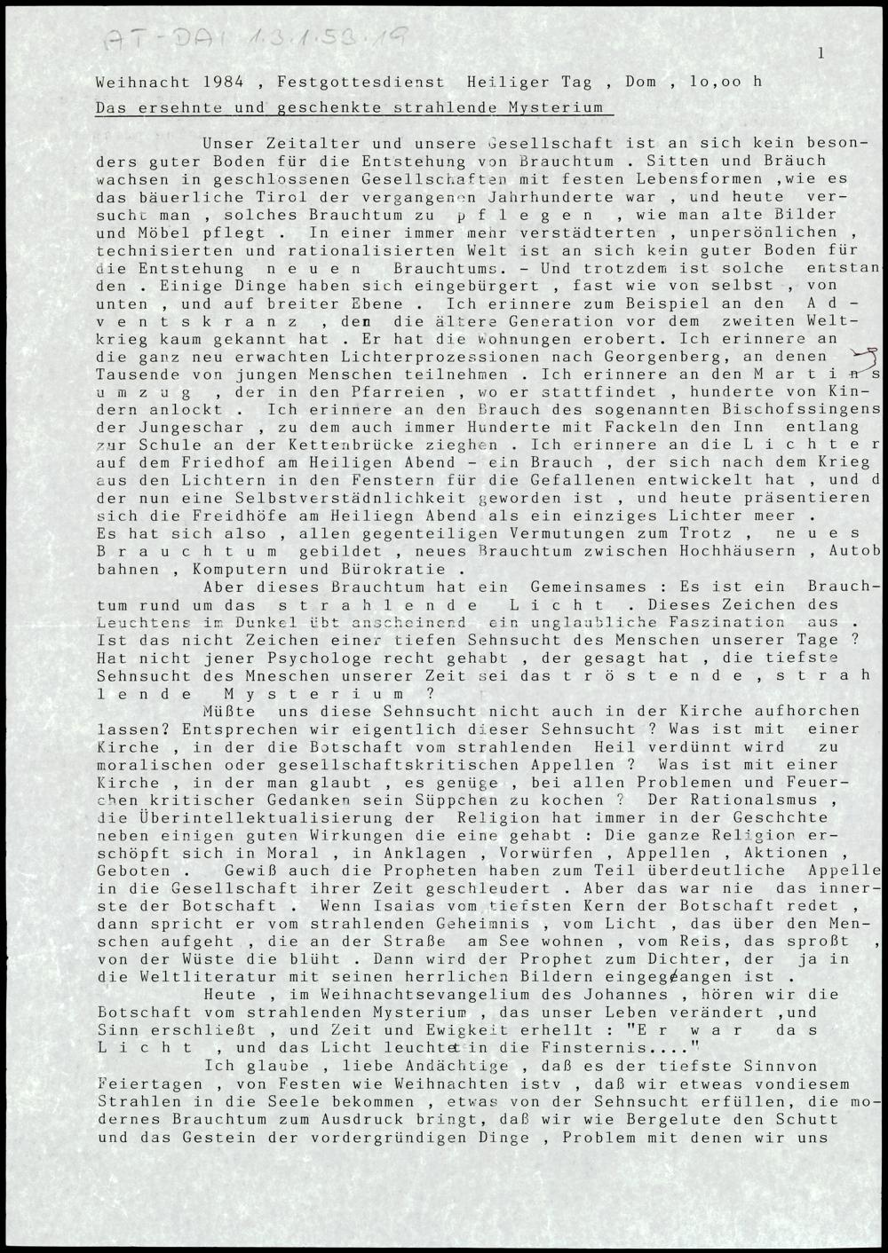 Das ersehnte und geschenkte strahlende Mysterium