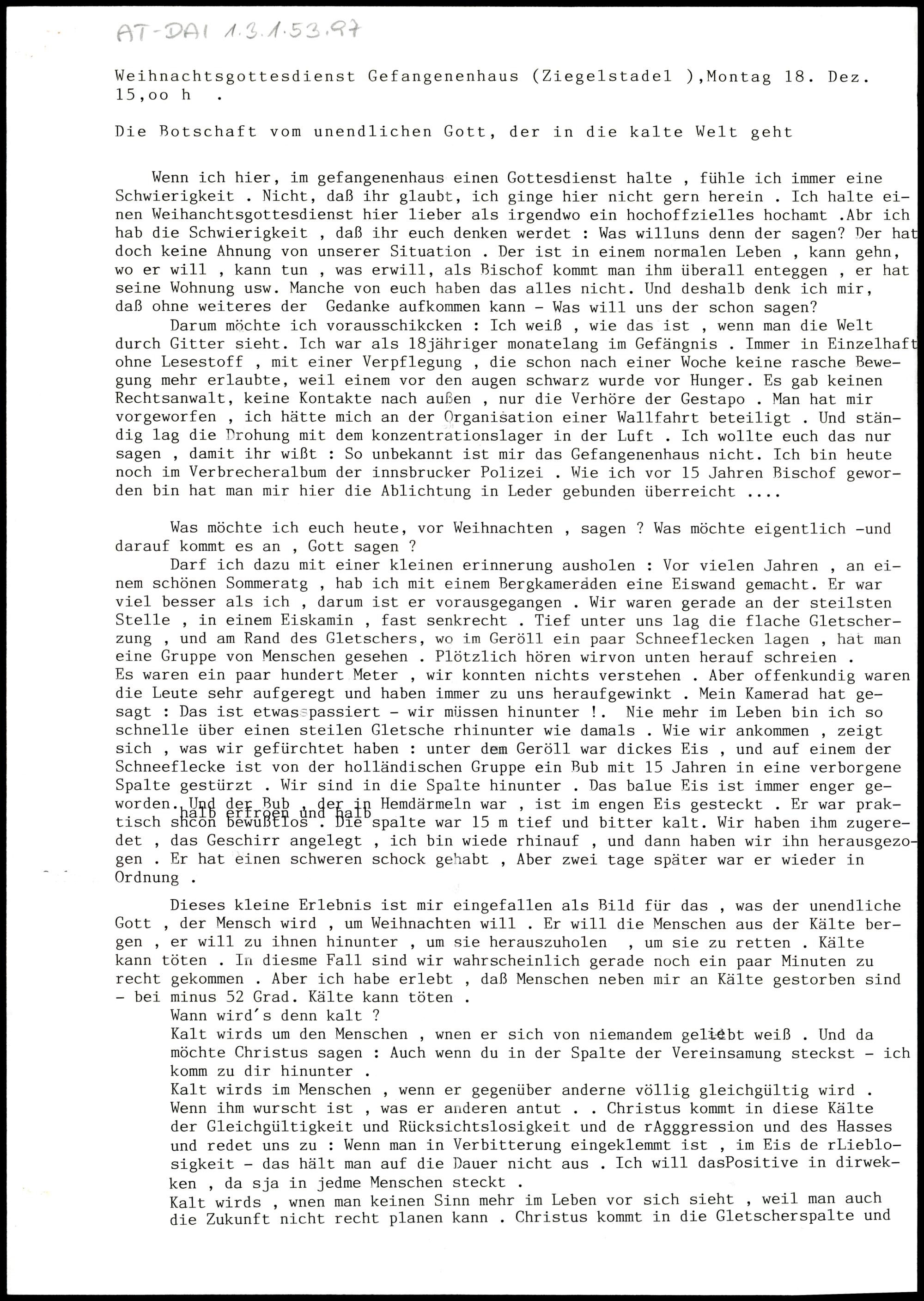 Die Botschaft vom unendlichen Gott, der in die kalte Welt geht