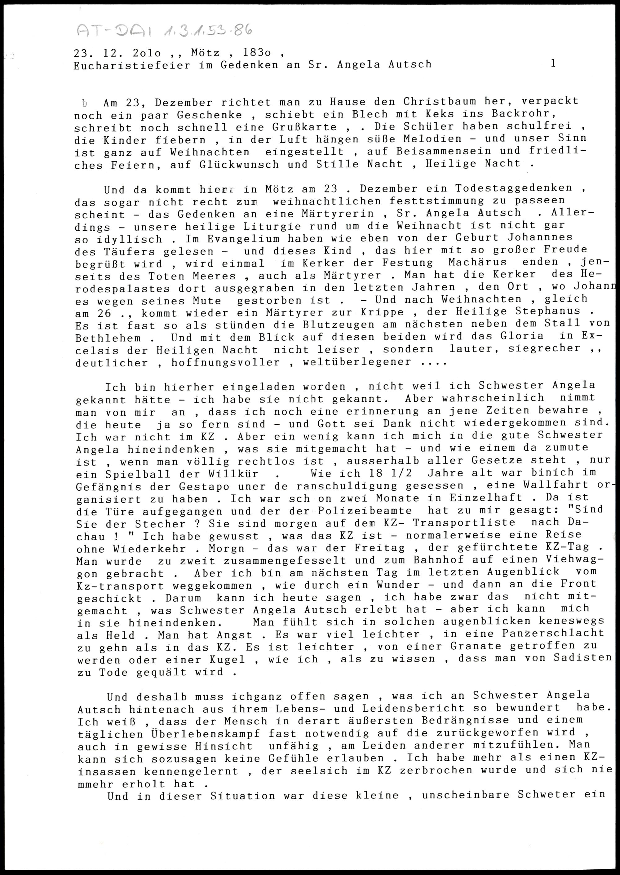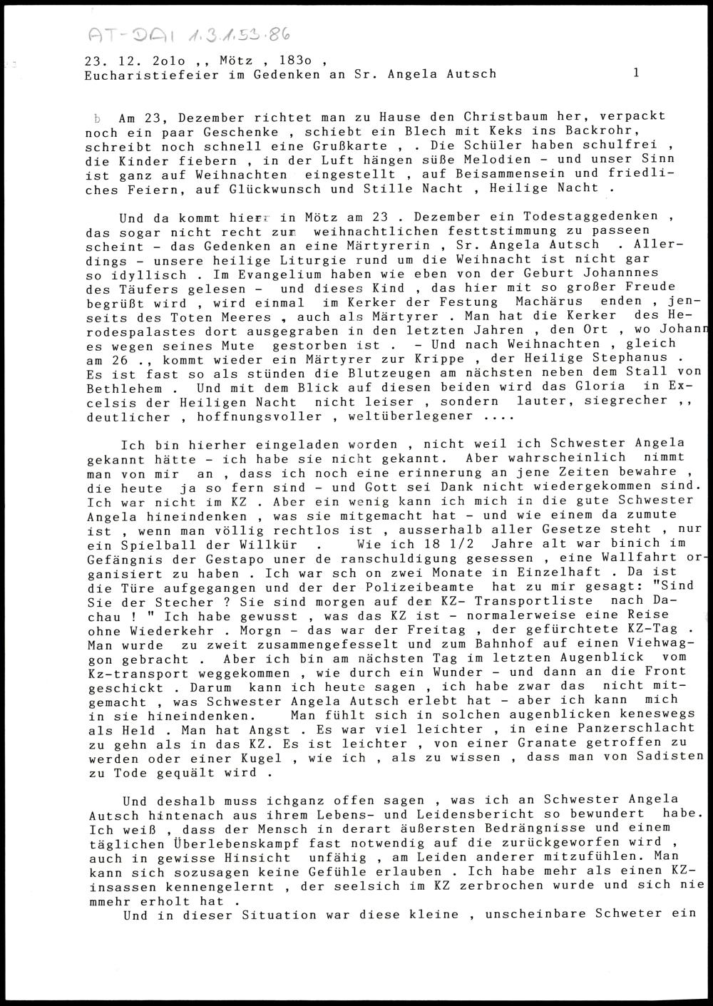 Eucharistiefeier im Gedenken an Sr. Angela Autsch
