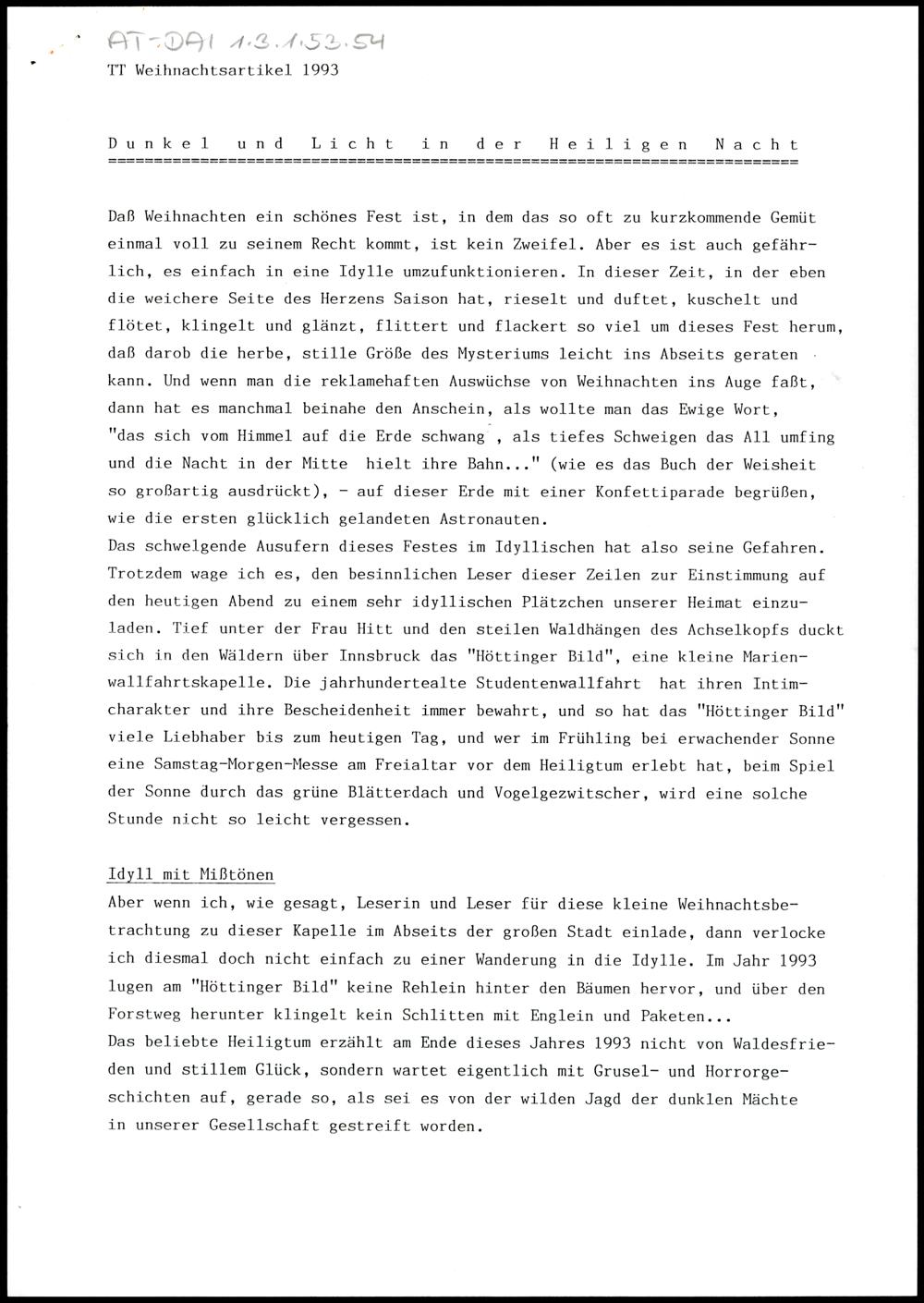 Dunkel und Licht in der Heiligen Nacht
