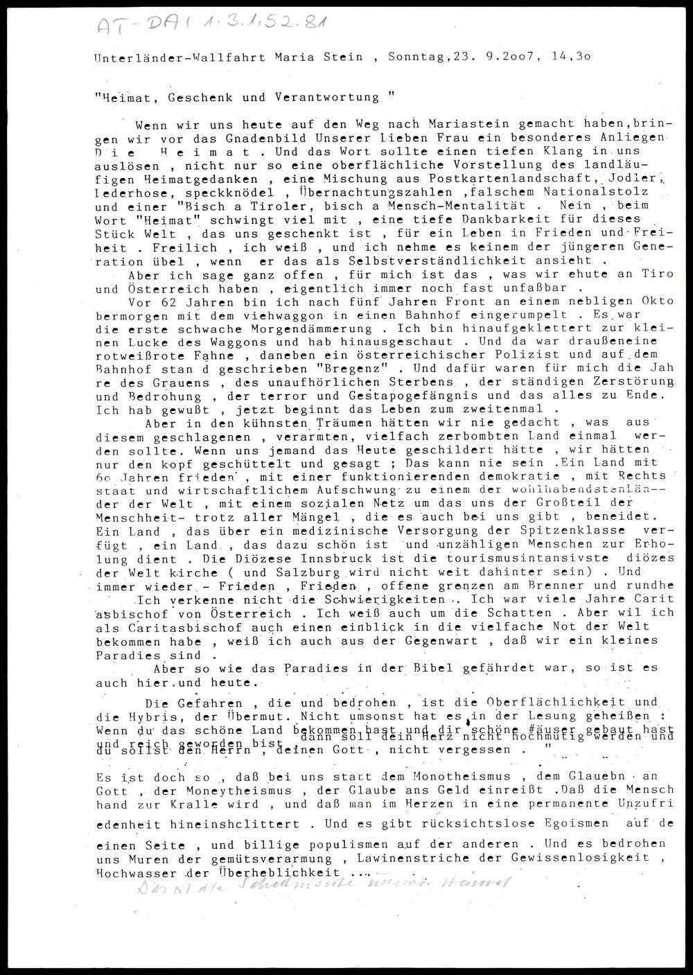 "Heimat, Geschenk und Verantwortung"