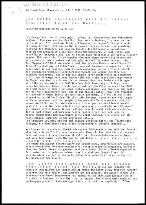 Die wahre Heiligkeit geht mit leisen Schritten durch die Welt....
