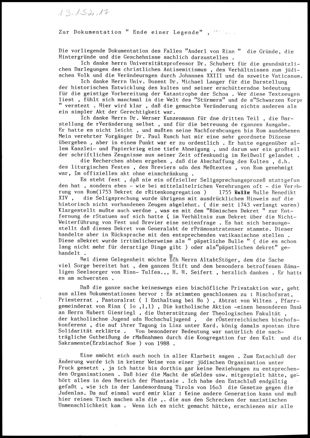 Bischof Stecher: Die Frage Judenstein