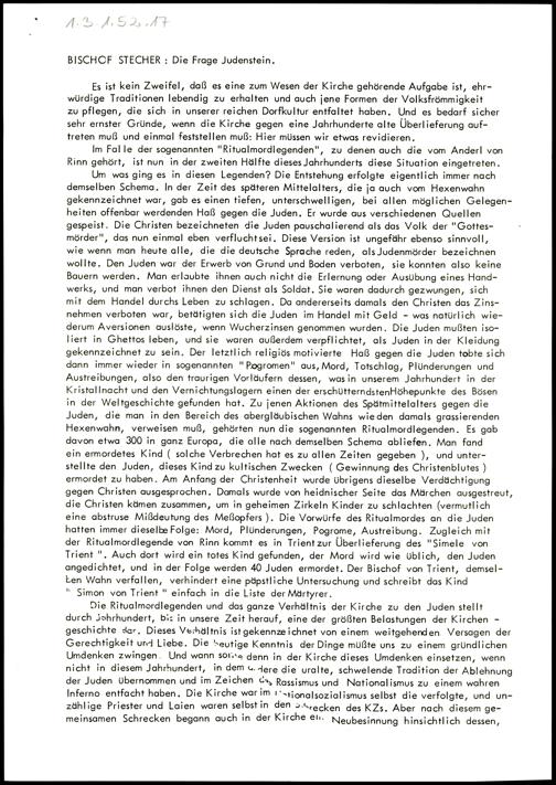 Handschriftlicher Text Gedenkstein Anderl von Rinn