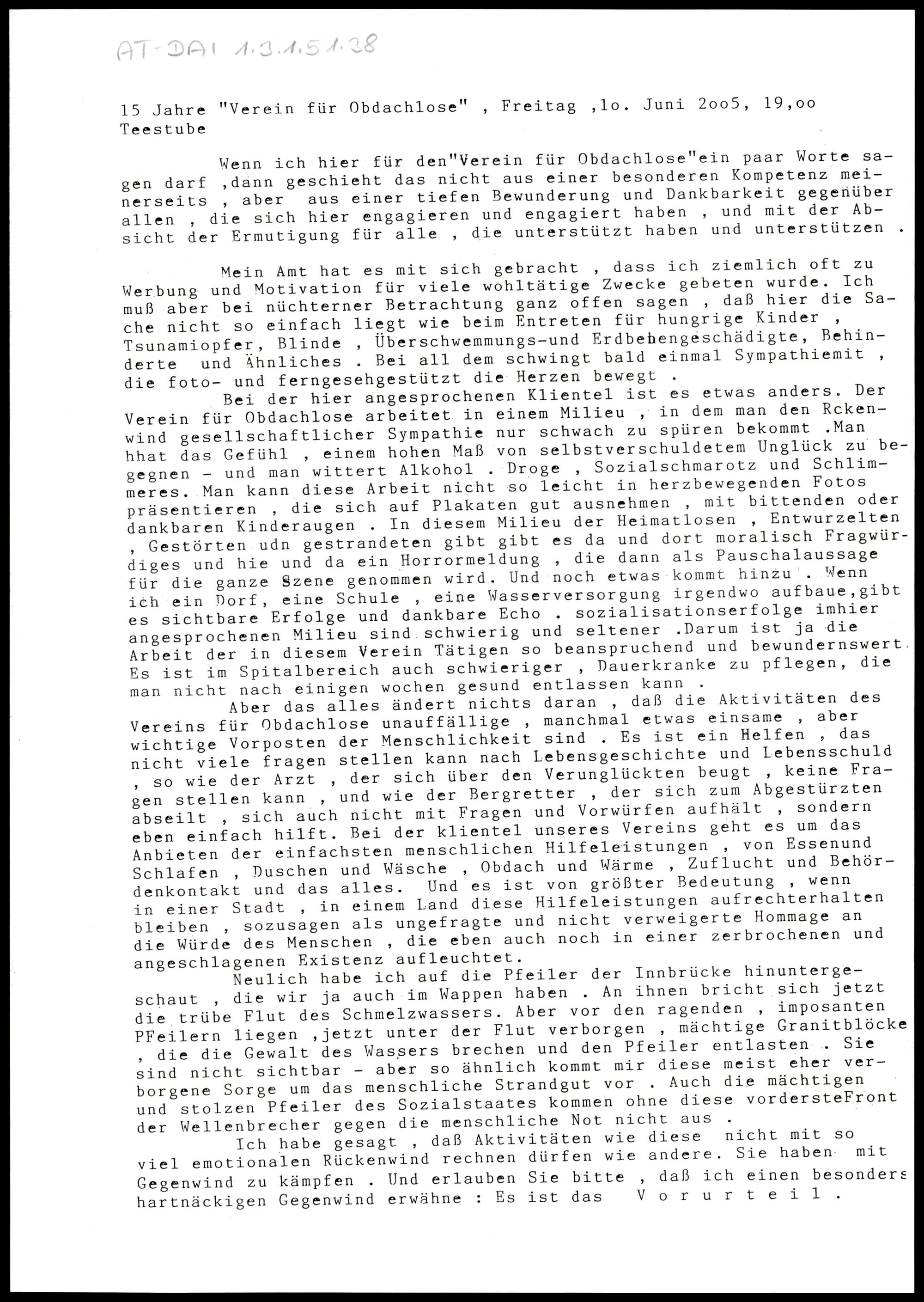 15 Jahre "Verein für Obdachlose"