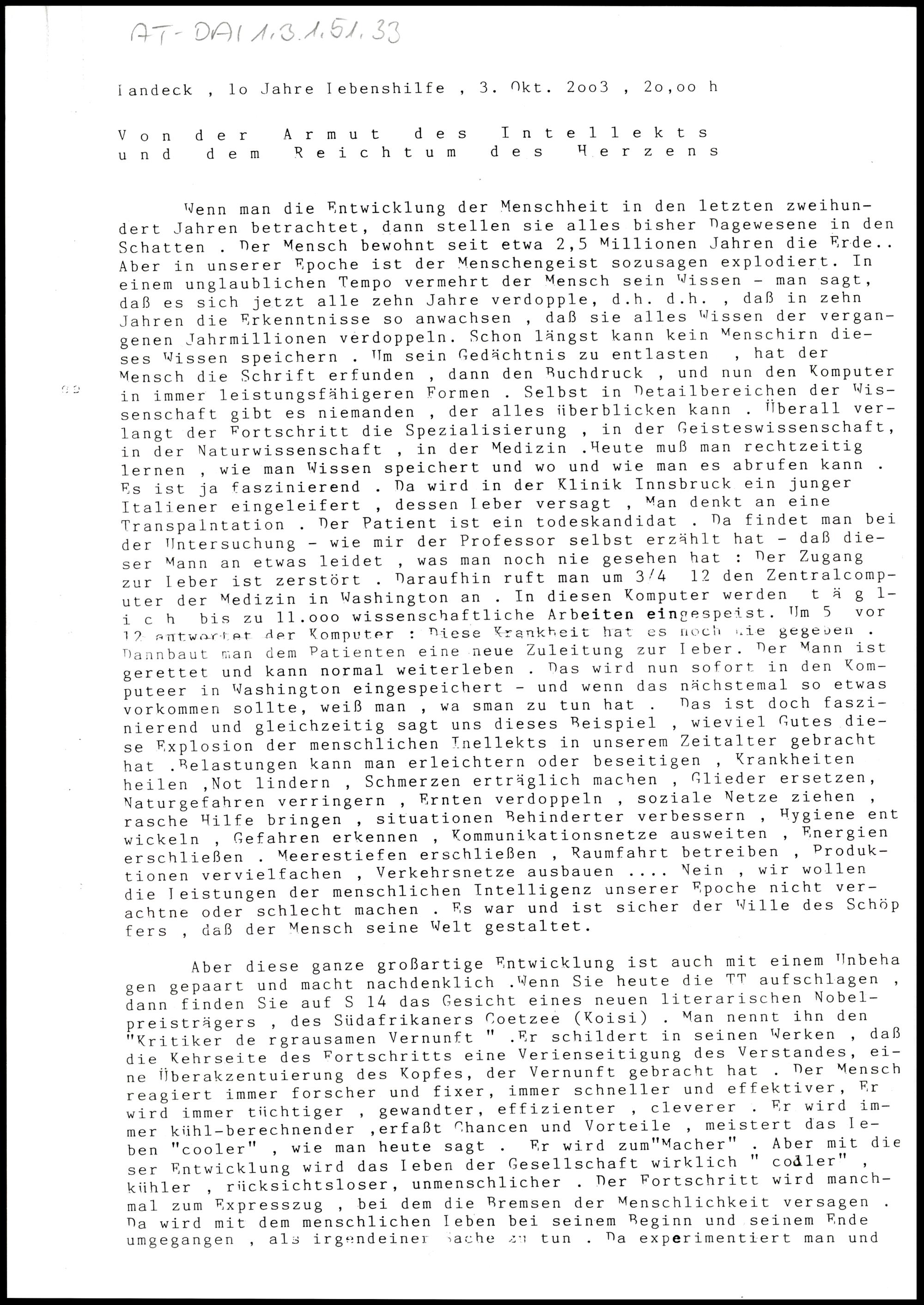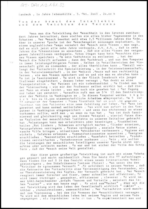 Von der Armut des Intellekts und dem Reichtum des Herzens