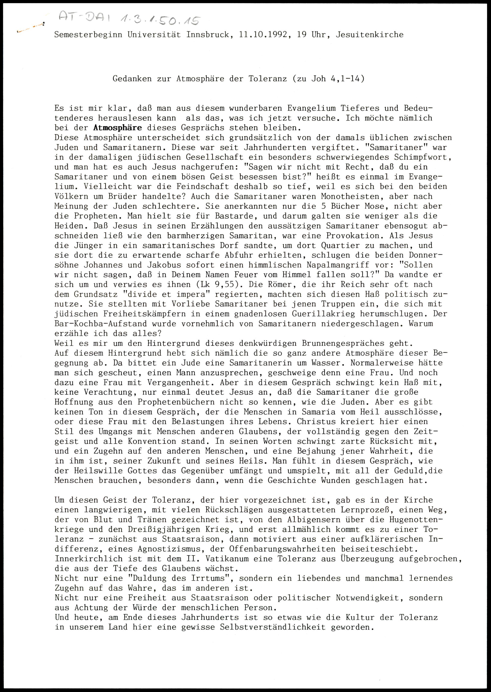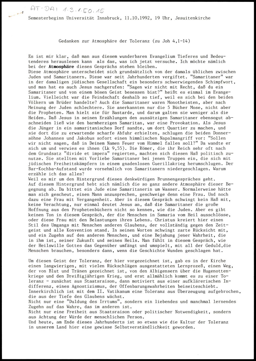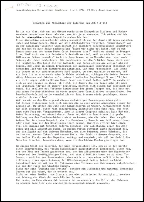 Gedanken zur Atmosphäre der Toleranz