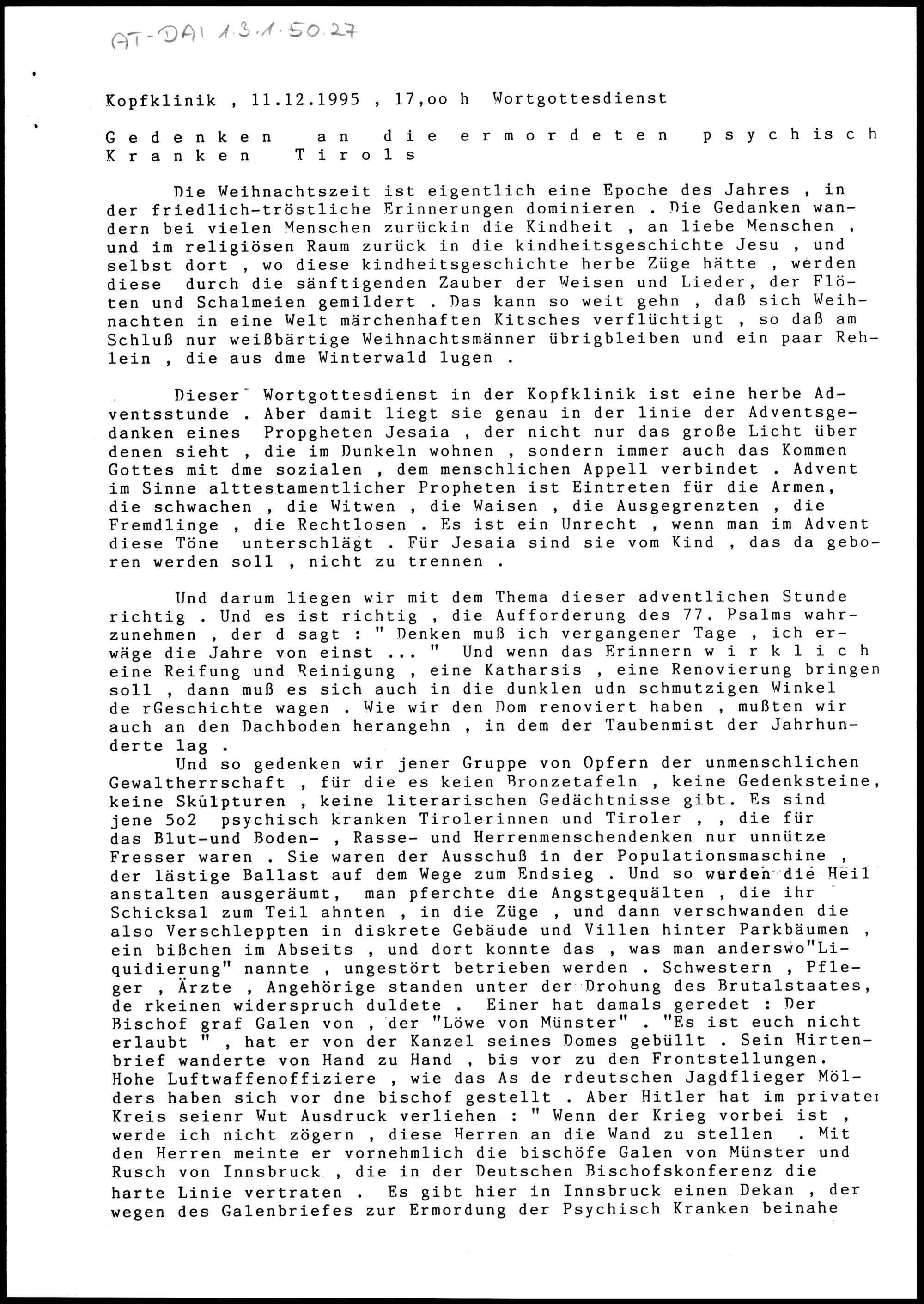 Gedenken an die ermordeten psychisch Kranken Tirols
